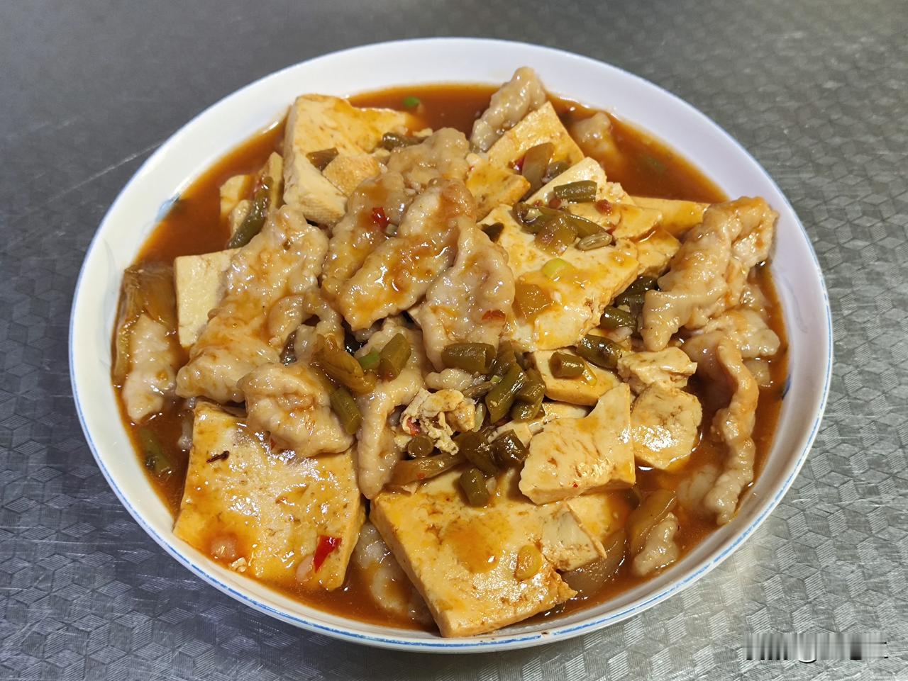 四月十七日午餐分享来啦!有酸菜烧豆腐滑肉片,香气扑鼻;有蔬菜汤(打卡十一天),健康又营养;有凉拌黄瓜,脆爽又下饭;还有二米饭。