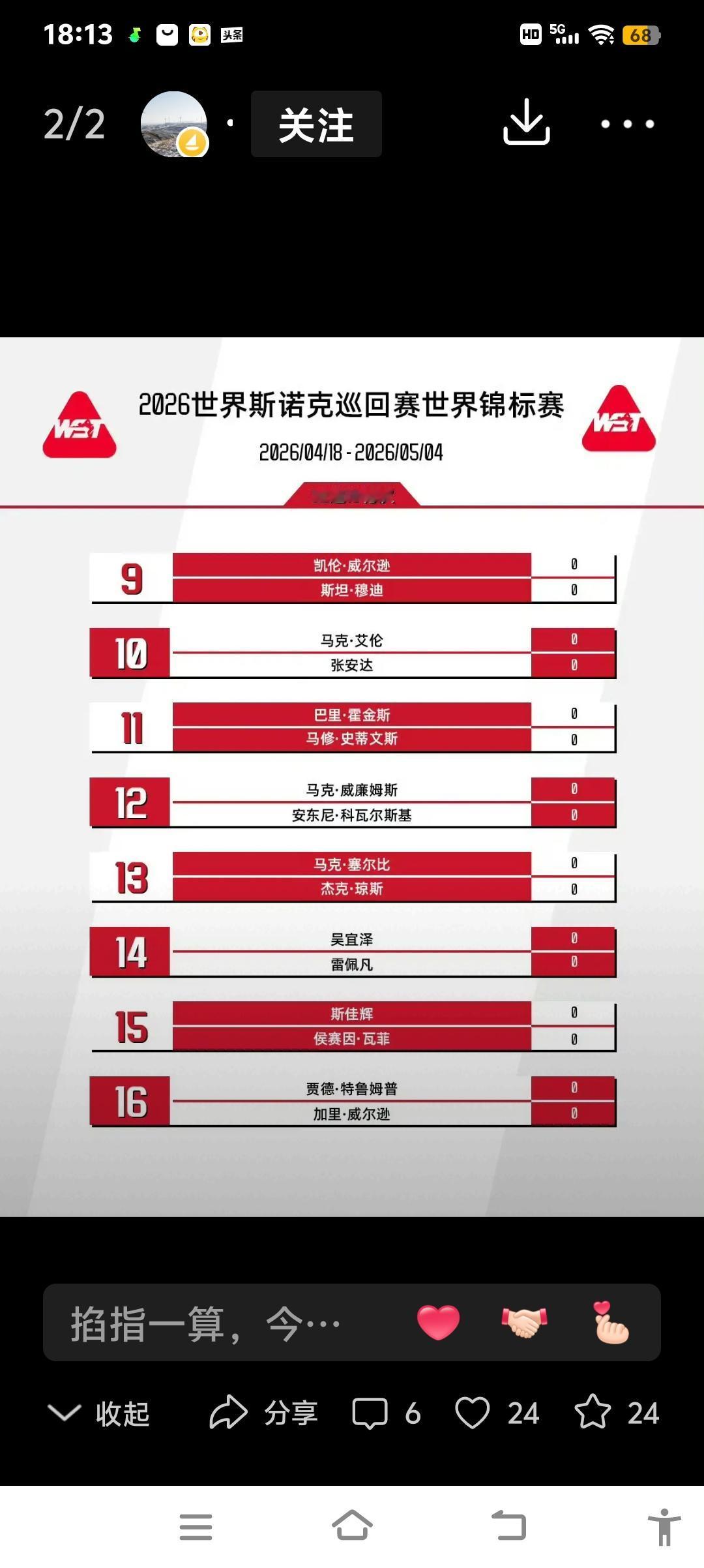 2026斯诺克世锦赛今天开杆啦,我国选手赵心童首当其冲,踏上卫冕之路。4月16日资格赛结束,11名中国选手闯入正赛,超越去年创了新纪录。