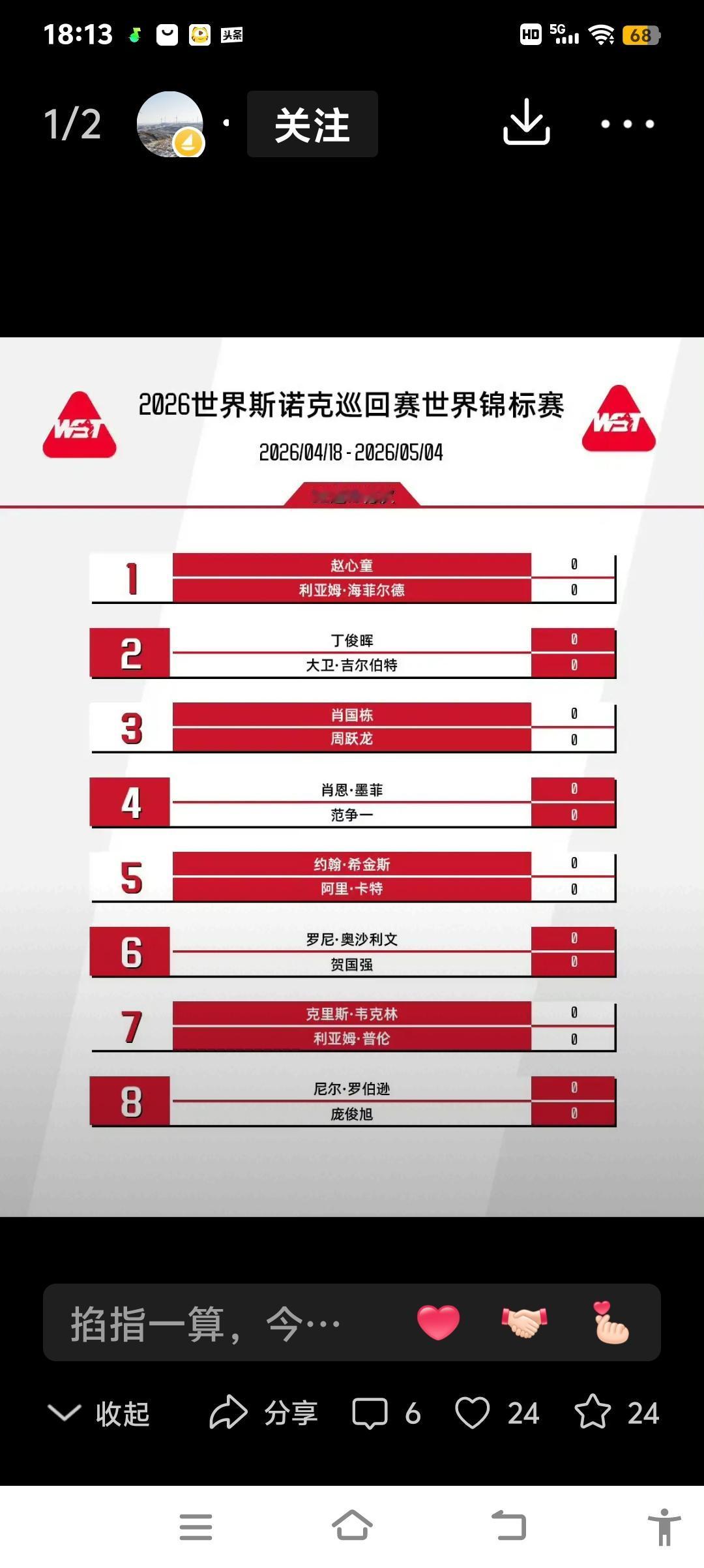 2026斯诺克世锦赛今天开杆啦,我国选手赵心童首当其冲,踏上卫冕之路。4月16日