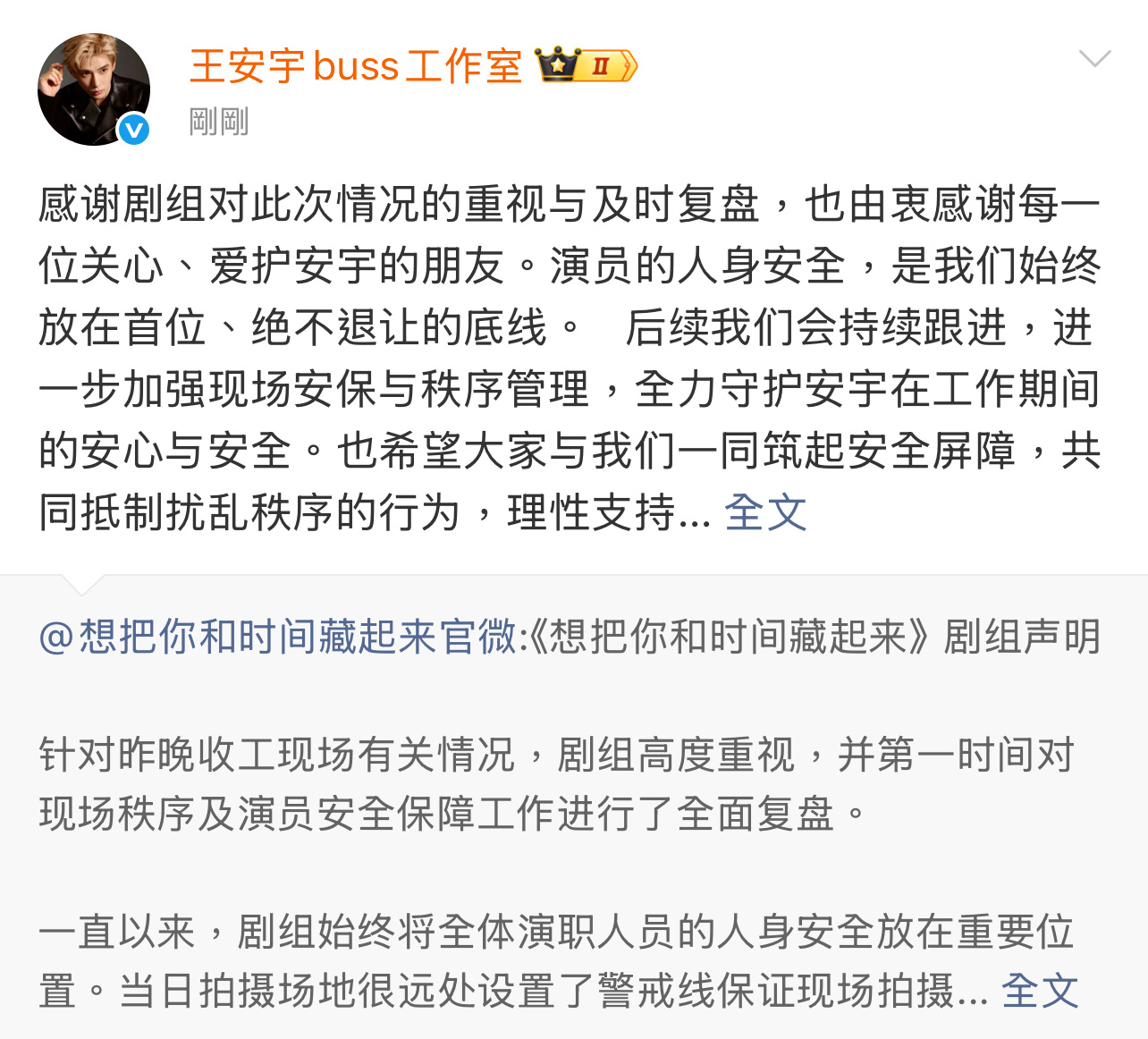 王安宇疑被激光笔照射剧组需担责,《把你和时间藏起来》剧组回应王安宇粉丝了,但没回