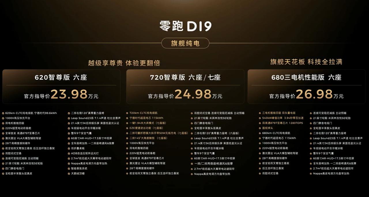 为什么有些旗舰会高开低走?因为发布会讲的故事,上市后露馅了。零跑D19没接这个剧本,不靠定高价来装点自己的旗舰身份(虽然价格真的很有冲击力),而是用配置和体验撑住了。双腔空悬、半苯胺、80度电池、1280TOPS、1000V……这些硬货摆在那,消费者试一圈就知道值不值。