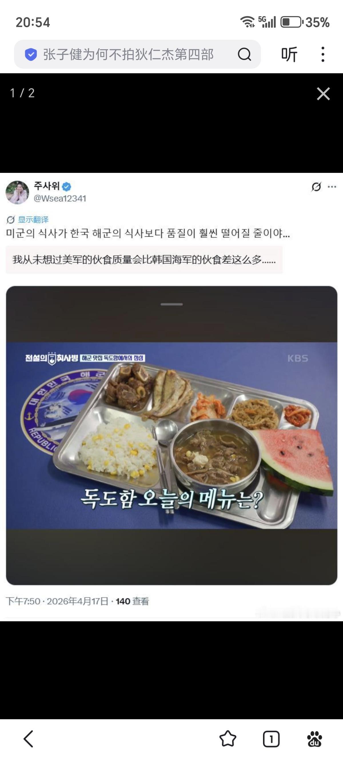 “我从未想过美军的伙食质量会比韩国海军的伙食差这么多……”