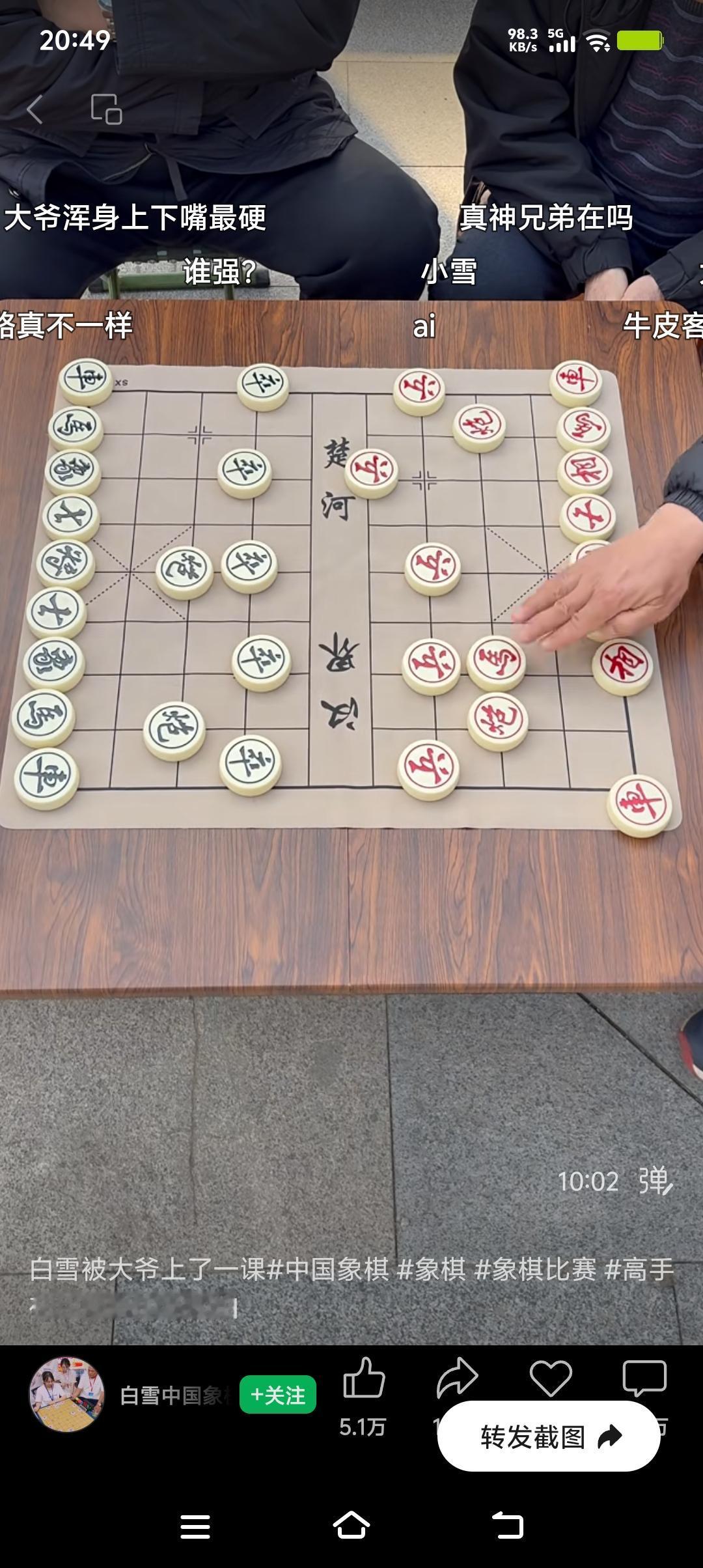 中国象棋高手对决,红白双方棋艺高超,棋盘上的每一颗棋子都充满了智慧与较量。