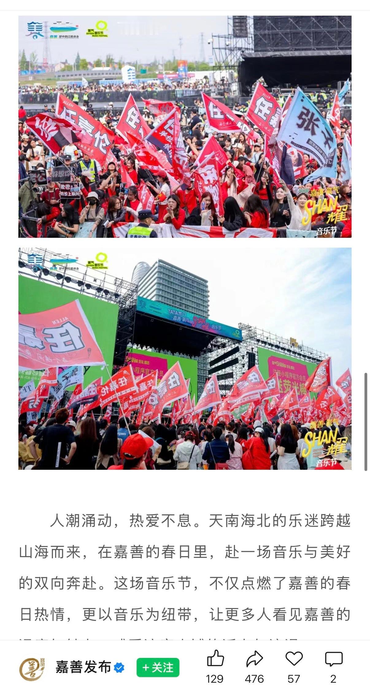 任嘉伦任嘉伦嘉善氧气音乐节任嘉伦四专新歌嘉善首秀 红色海洋,威武壮观,嘉人们太牛了!