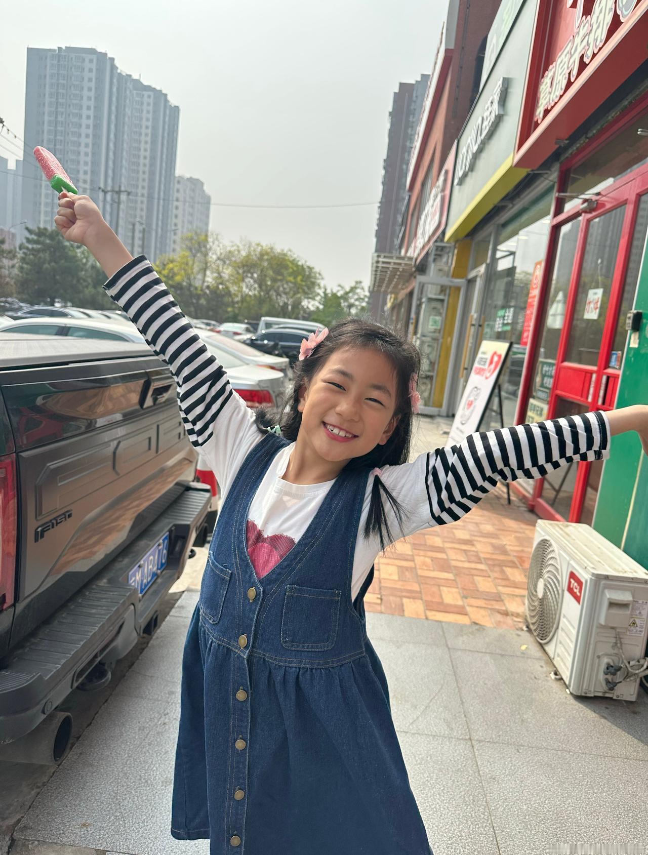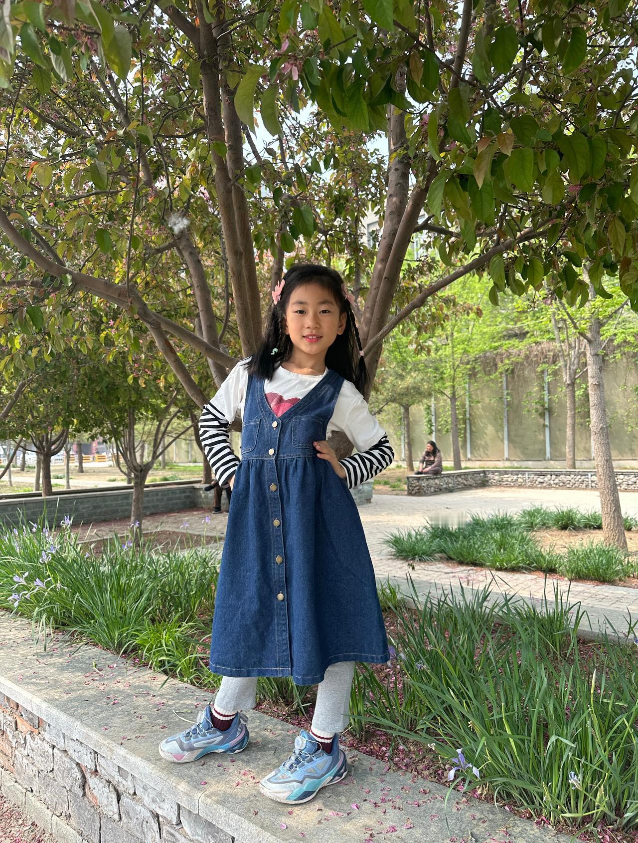 自己搭配的白色T恤+牛仔背心裙+打底裤