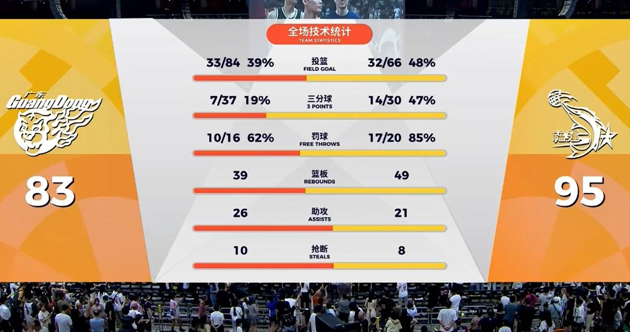 惊不惊喜,意不意外!面对着实力一般的福建队,广东队在第二节比赛一度领先18分的情况下,下半场比赛,遭到了福建队的超级大逆转,以83-95输给了福建队12分。让人看到是目瞪口呆!