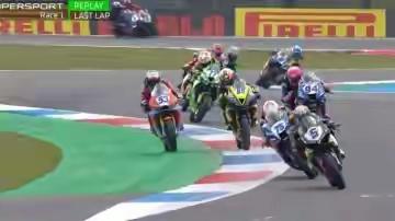 剩最后五圈时,车与车之间发生碰撞刮蹭,排在前面的两辆车受到了严重影响。瓦伦丁德比斯的希望重燃,又杀回到第一。