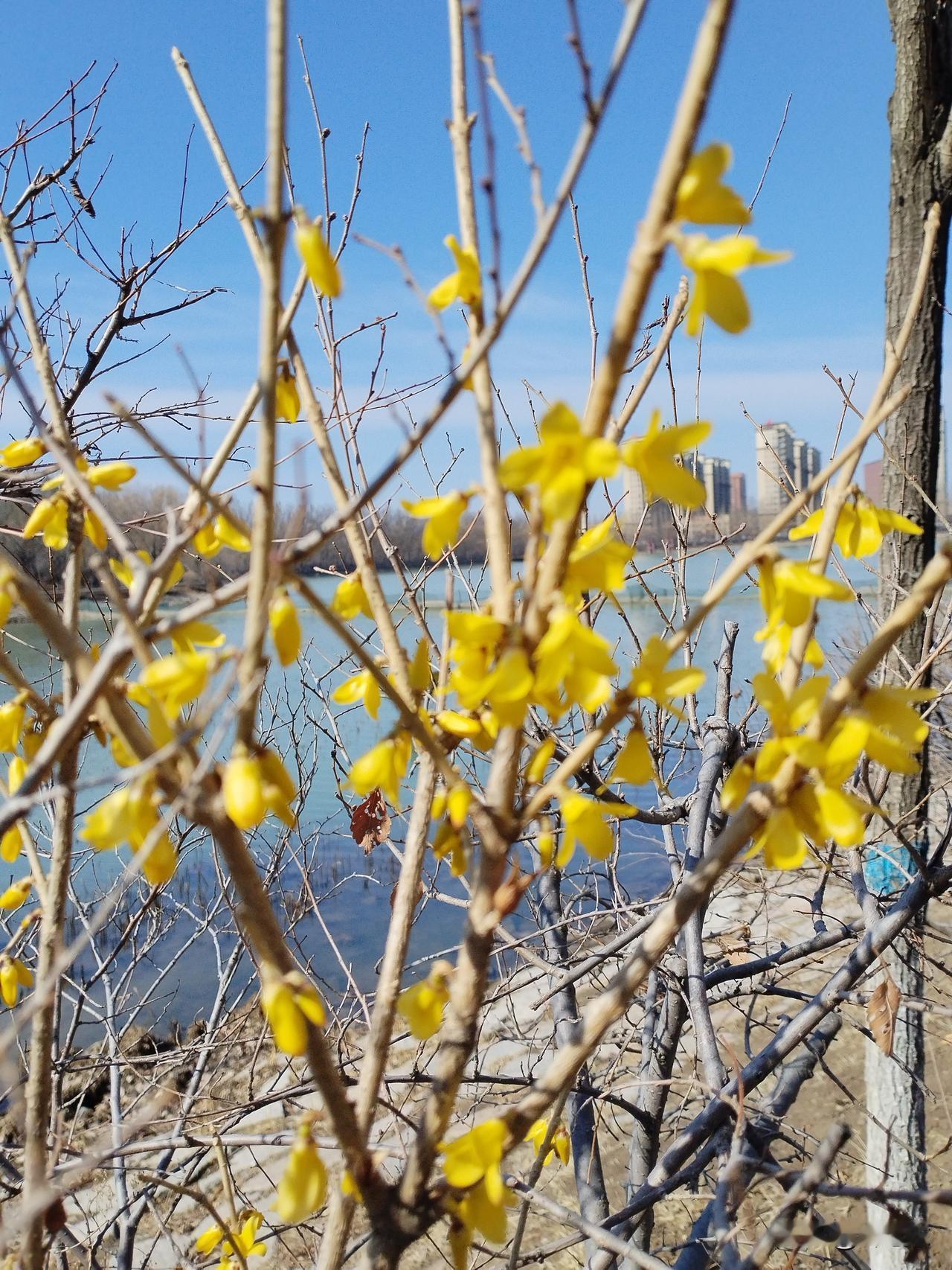 湖畔黄花映琼楼,