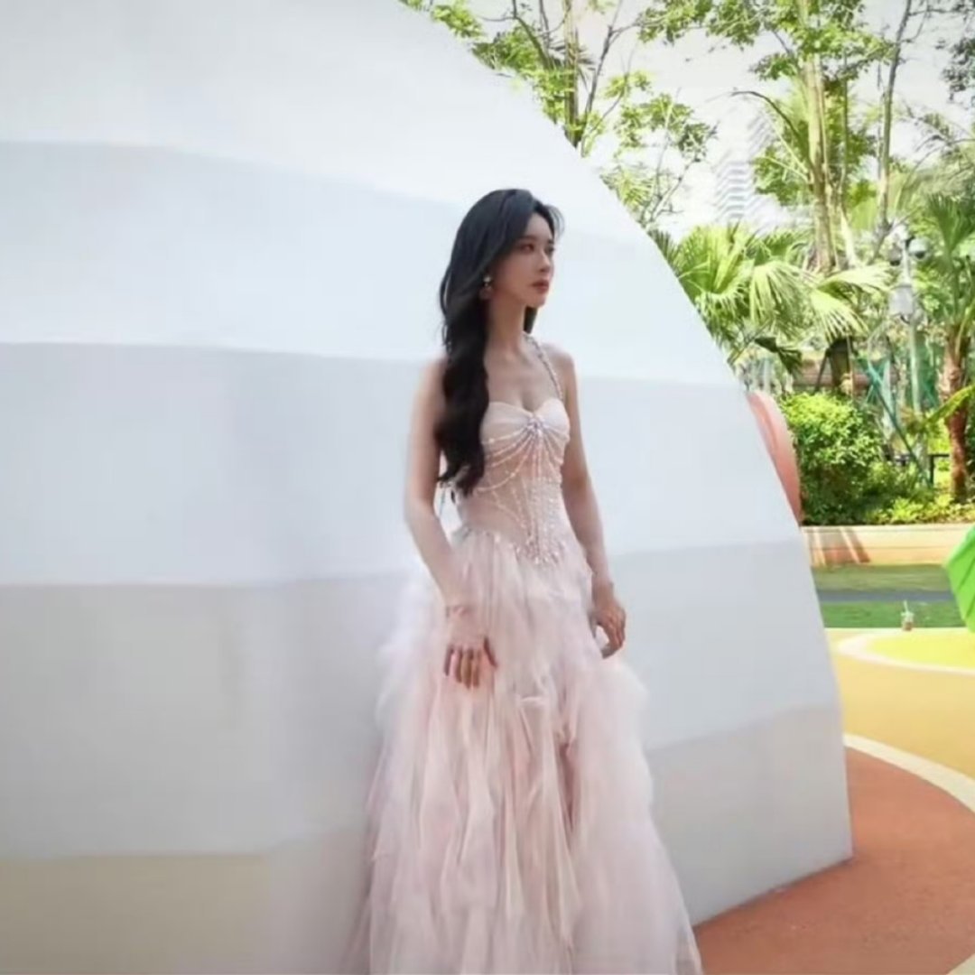 孟子义粉嫩仙女裙造型仙女配仙裙💕奔跑吧多来点绝美造型十亿吨跑男的料奔跑吧