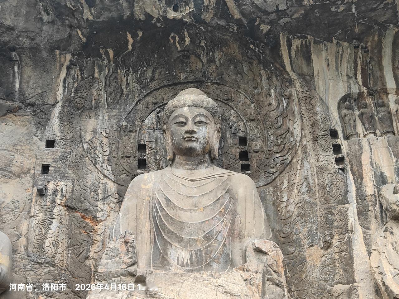 下午我们去了白马寺和隋唐城遗址博物馆。排队半小时,见到园中仅此一棵的牡丹——《银丝灌顶》。第三天游览了著名的四大石窟之一龙门石窟。晚上我们驱车来到栾川住下,夜游了栾川古渡。第四天我们就来到河南著名的名山——老君山