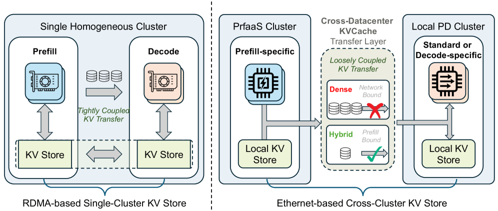 Kimi 和清华发表了一项研究,实现了 Prefill 和 Decode 解耦,而且不是简单的异构,而是可以把 Prefill 和 Decode 放在不同的机房(arxiv.org/html/2604.15039v1)。