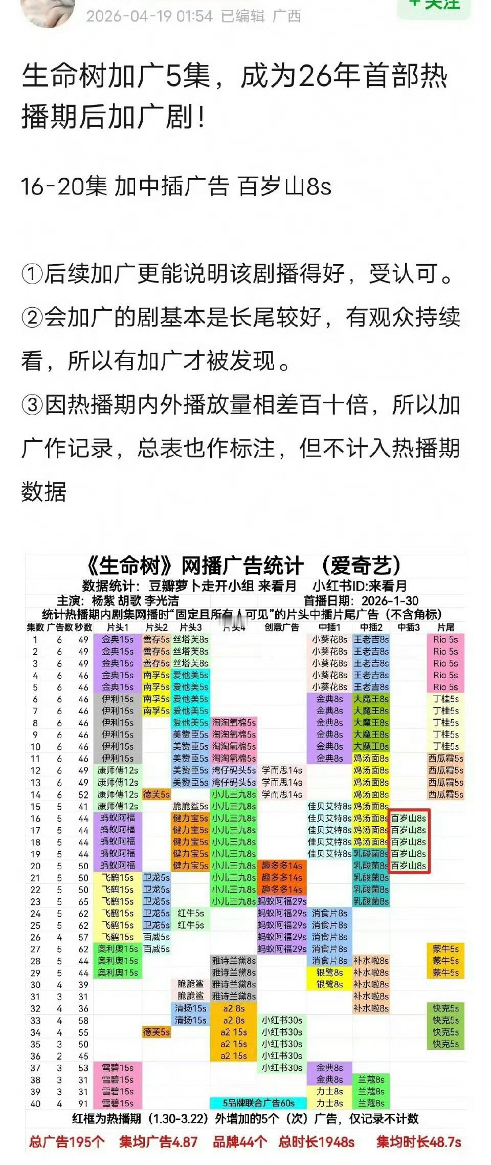 杨紫的剧播完了还有广告加,李昀锐黄杨钿甜的在播剧《冰湖重生》没广告,差别真大!杨紫新剧老年妆杨紫生命树加广5集