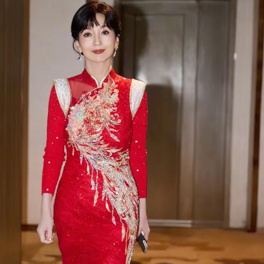 4月19日河南新郑黄帝故里拜祖大典现场,赵雅芝穿一身酒红色旗袍亮相,腰杆挺得笔直,走路时从容又温柔,一颦一笑都透着东方女性的古典韵味,完全看不出一点岁月的痕迹。