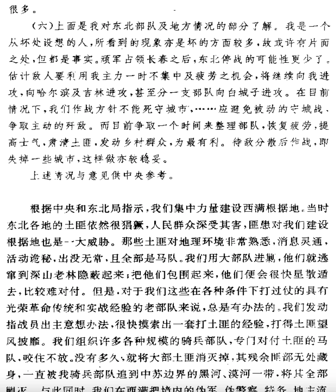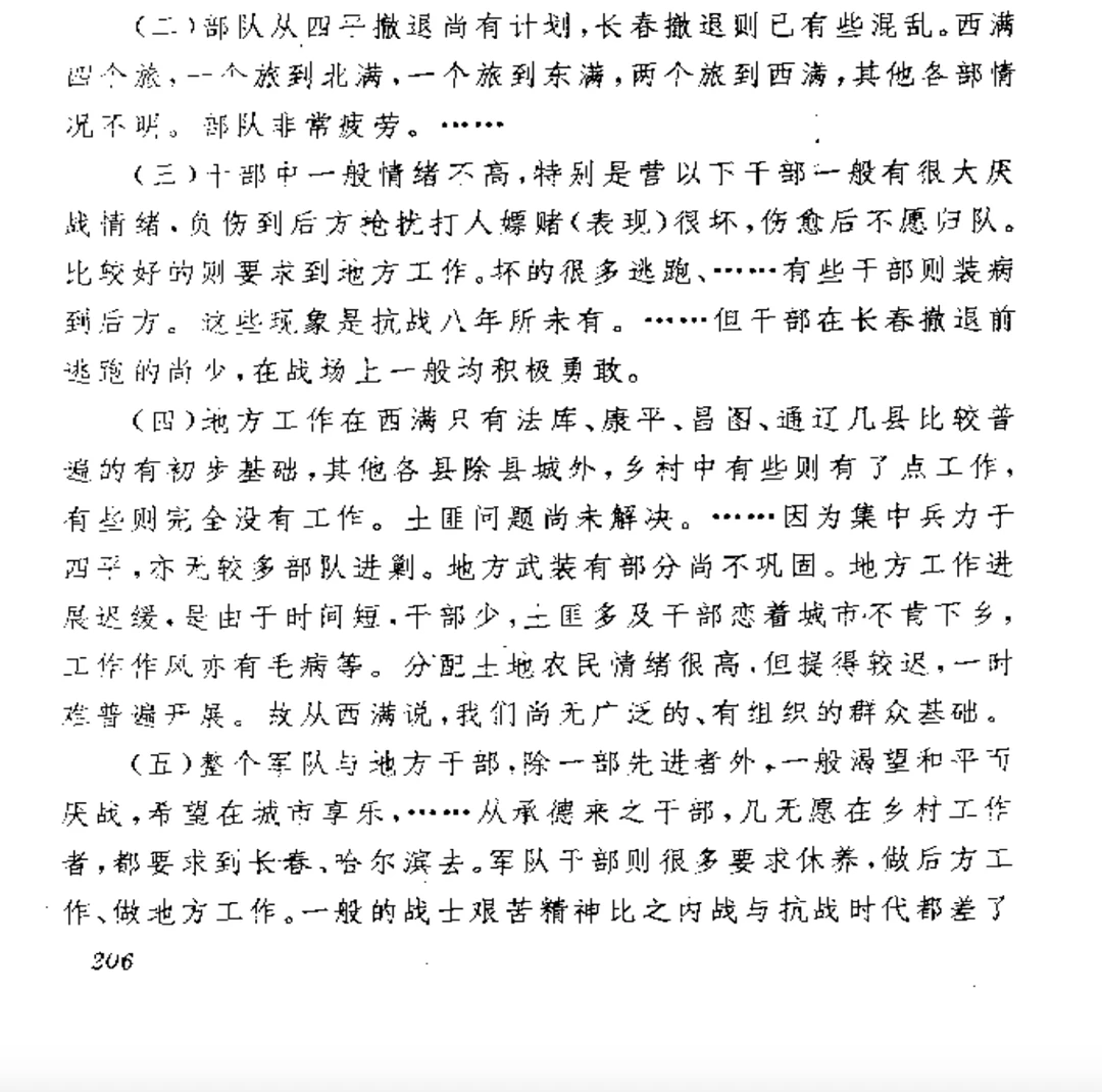 四平会战之后的东北情况,黄克诚辰敬电文