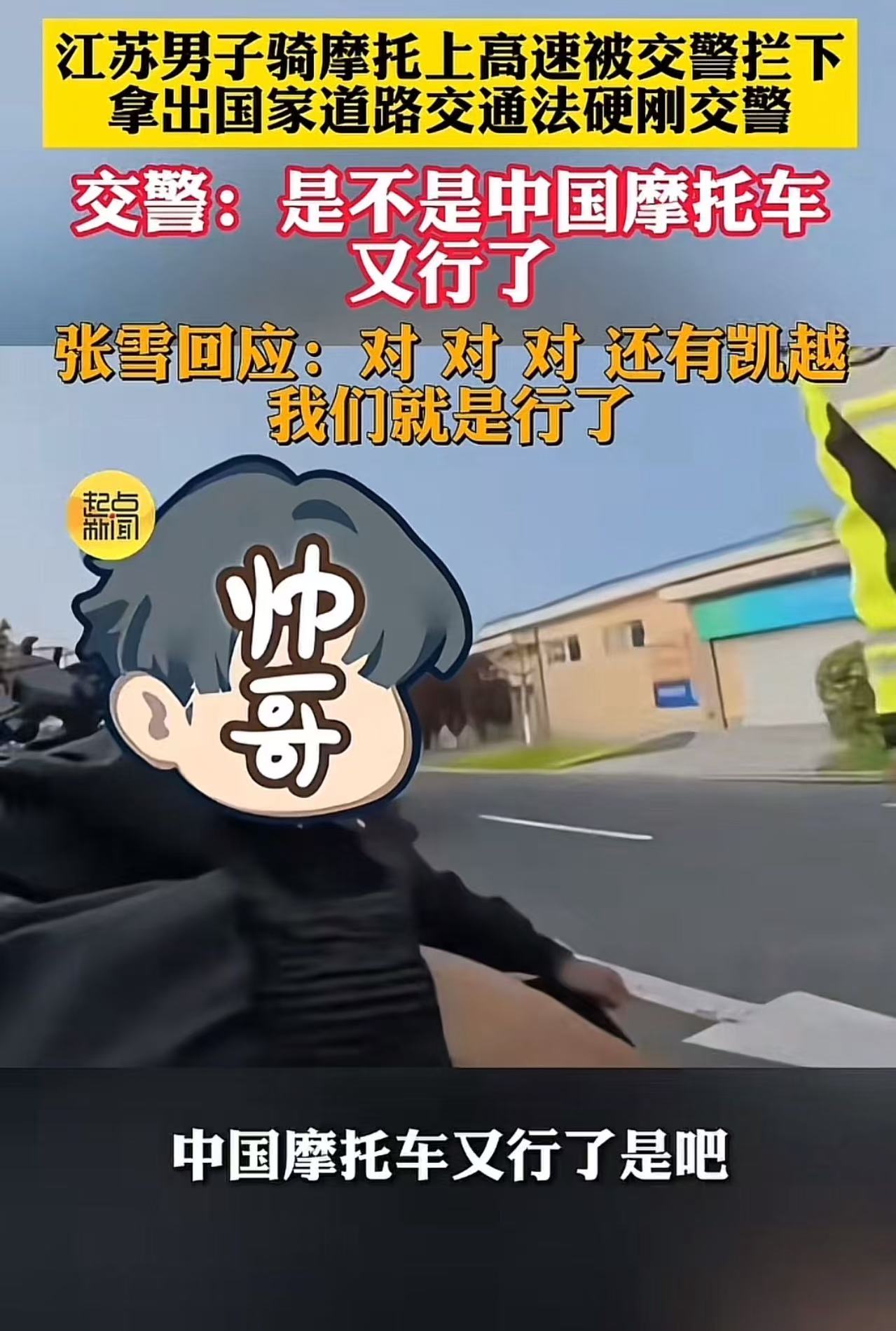 交警说:“是不是张雪机车给你打鸡血了?是不是中国摩托车又行了?”