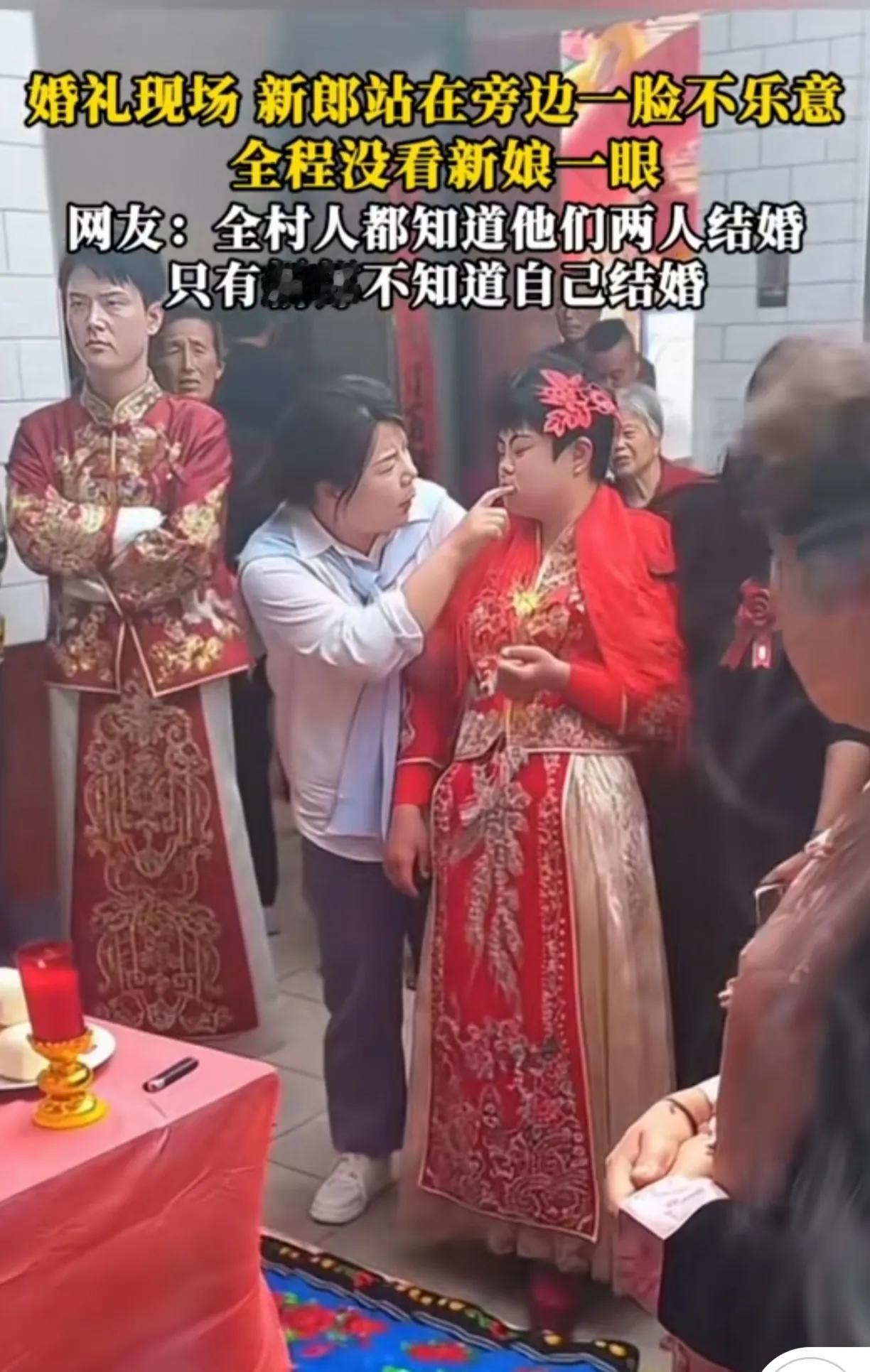 新郎摆着最臭的脸,这场婚礼新郎比谁都煎熬!这婚非结不可吗?新郎抱着手臂站在一旁