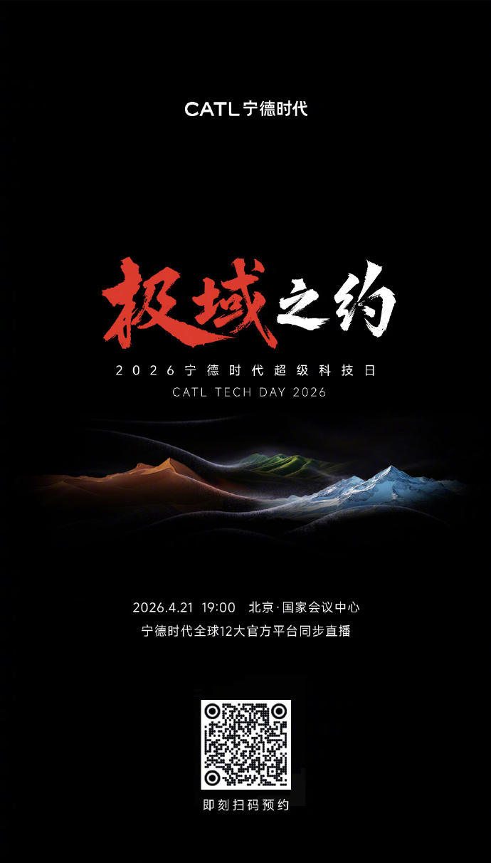 宁德时代举办技术密度最高发布会4月21日,宁德时代2026超级科技日将启。去年首届就发布三款重磅电池,惊艳新能源圈。今年大概率在充电速度、能量密度再突破。若真如此,不仅提升用户体验,更会推动行业革新,让靠堆重量体积做续航的方案加速淘汰,期待!