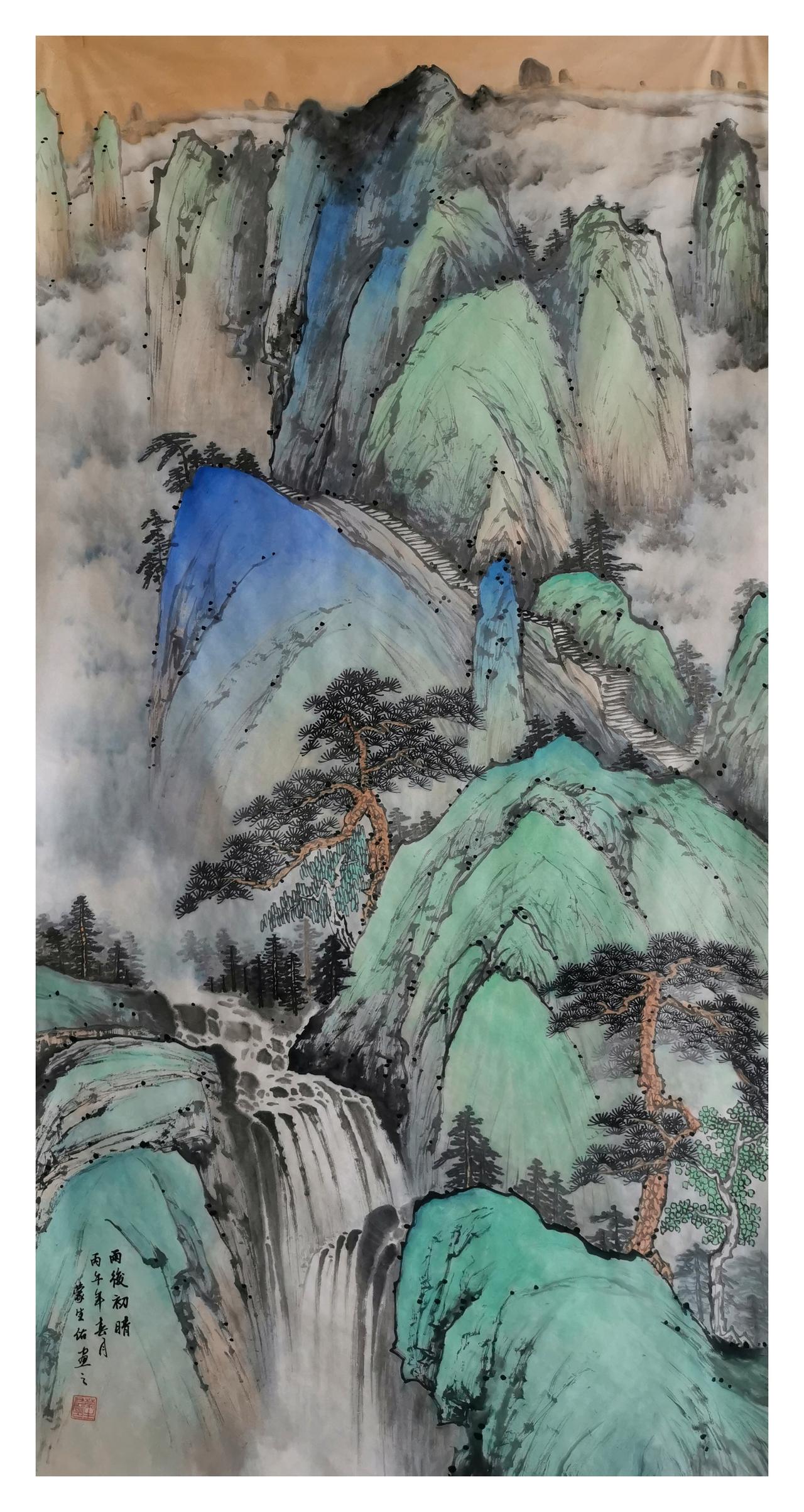 中国山水画原创作品欣赏: 尺寸:四尺(138x68) 纸本生宣宁静的山水画 山水