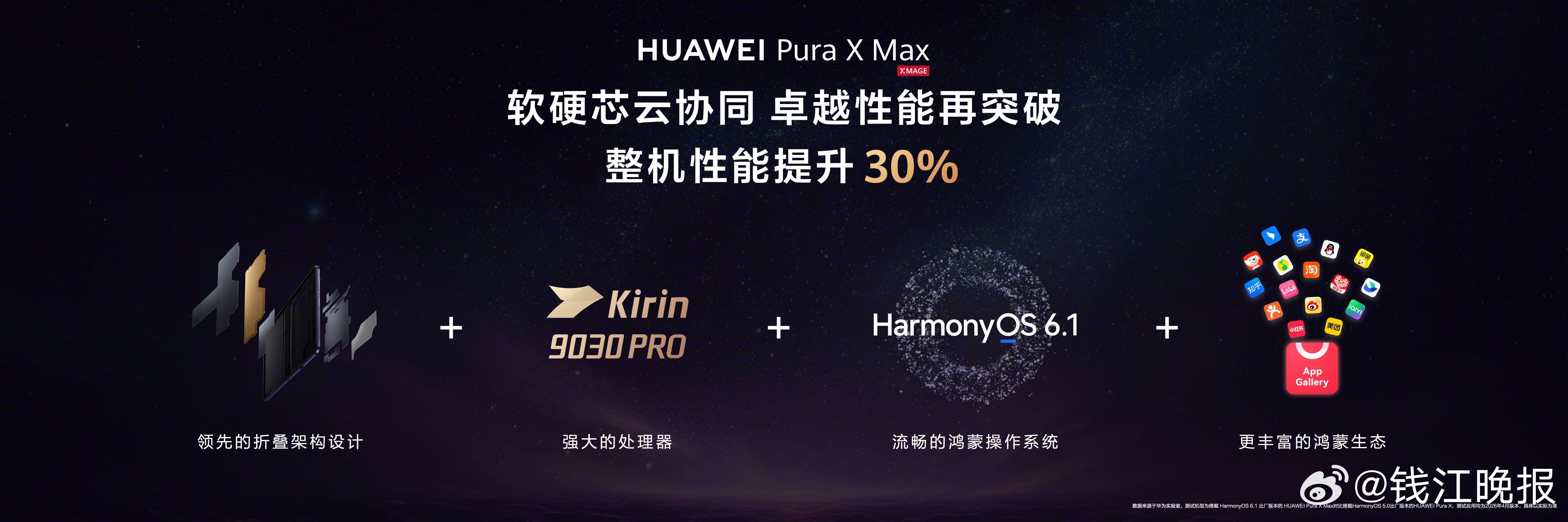 【#华为PuraXMax全系搭载麒麟9030Pro# 】全球首款大阔折华为Pura X Max今天正式发布,性能体验双重突破收获关注。性能层面,华为PuraXMax全系搭载麒麟9030Pro;体验层面,首发AI灵感妙创、首发XMAGE智拍、首发伴随式AI、首发视感漫画,以及#大疆Pocket4支持鸿蒙6.1设备直传# 等升级,为用户在阅读、创作、拍摄等多种场景带来全新体验。