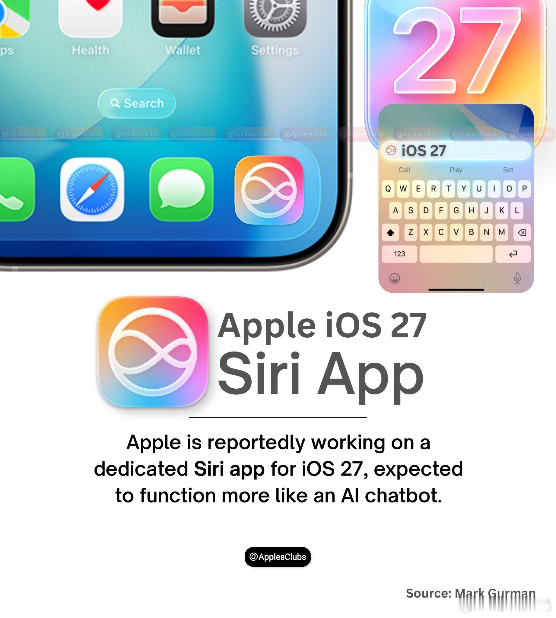 iOS27全新Siri界面Mark Gurmaniri爆料Siri将在iOS27