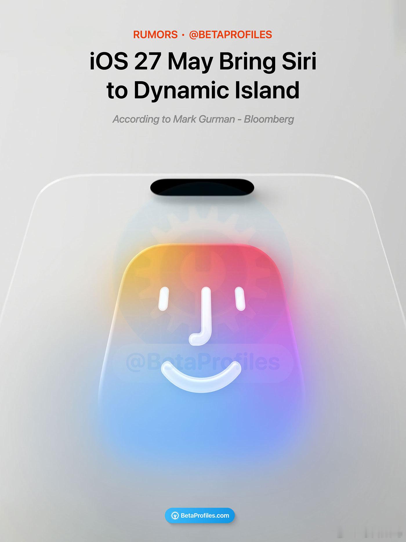 iOS27全新Siri界面Mark Gurmaniri爆料Siri将在iOS27登灵动岛了,触发Siri后,灵动岛会展开并有向外发光的动效。