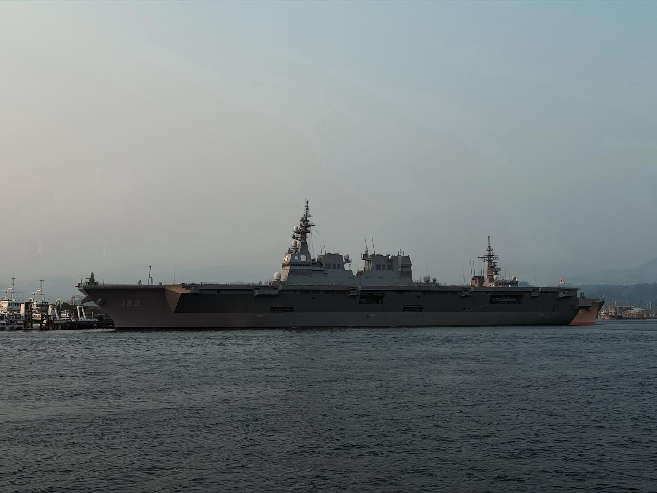抵达菲律宾苏比克湾的日本 DDH-182“伊势”号直升机驱逐舰和DD-107“雷”号驱逐舰,两舰都要参加美日菲“肩并肩”演习。“雷”号就是穿越台湾海峡的那艘。