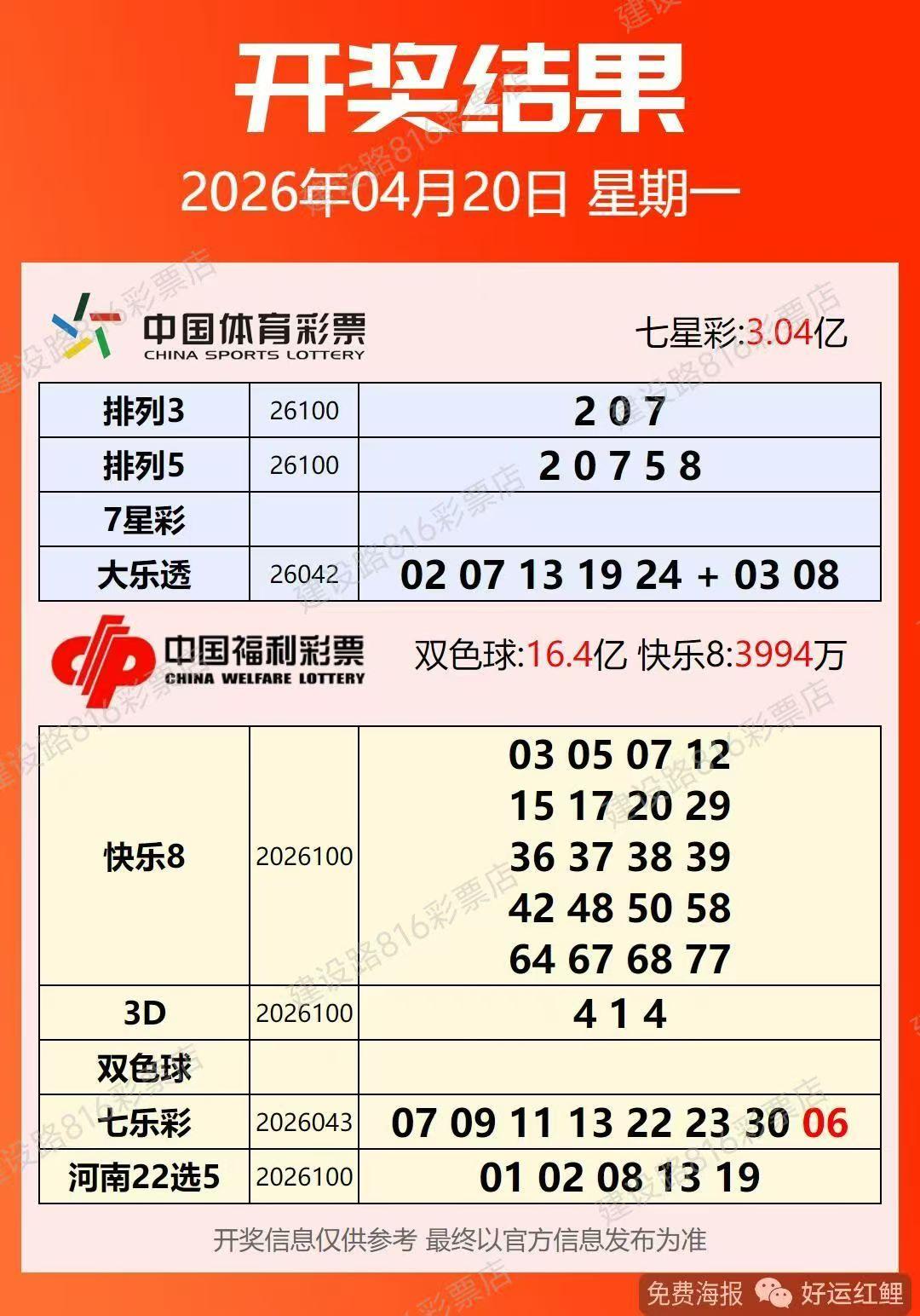 4月20号星期一,大乐透开奖号码揭晓:02、07、13、19、24—03、08。