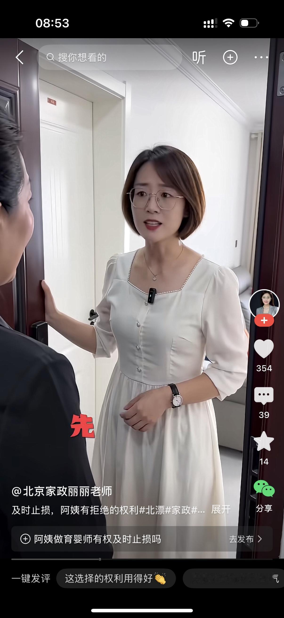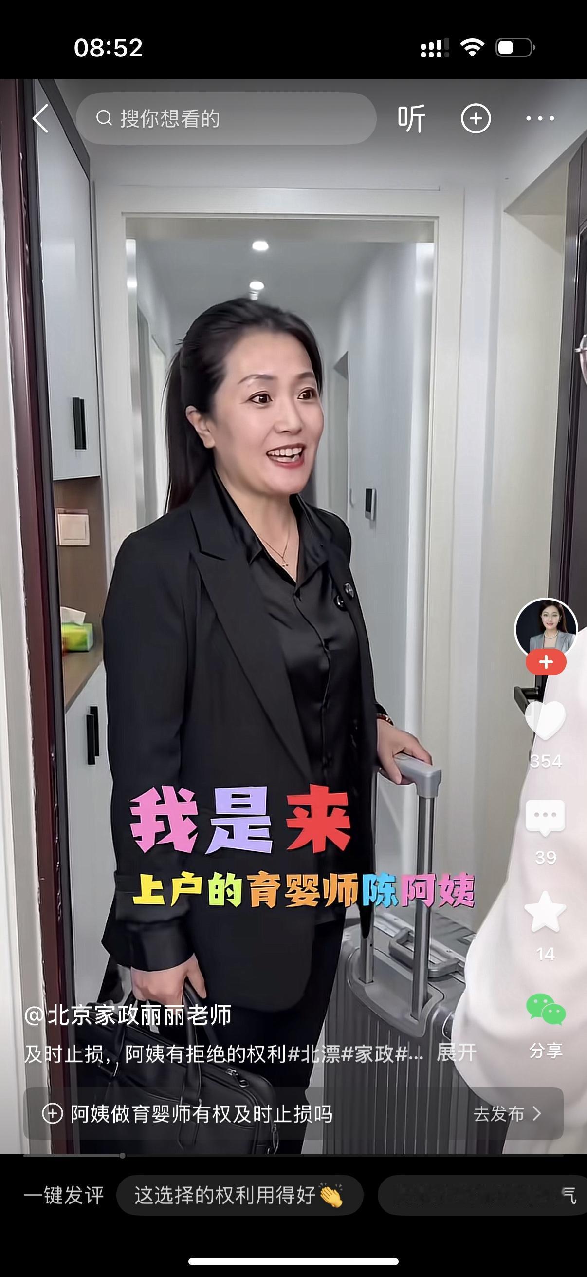 保姆穿戴整齐地去上户。女主人打开门,保姆就介绍自己,你好,我是上户的育婴师成阿姨