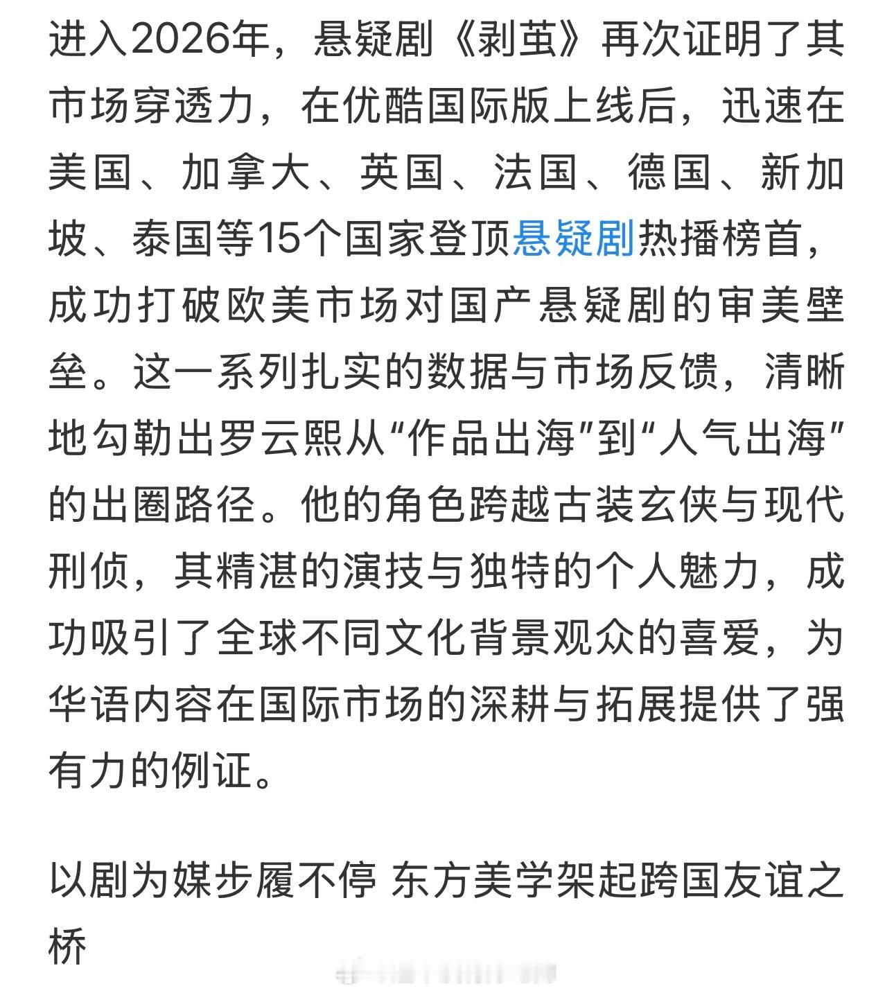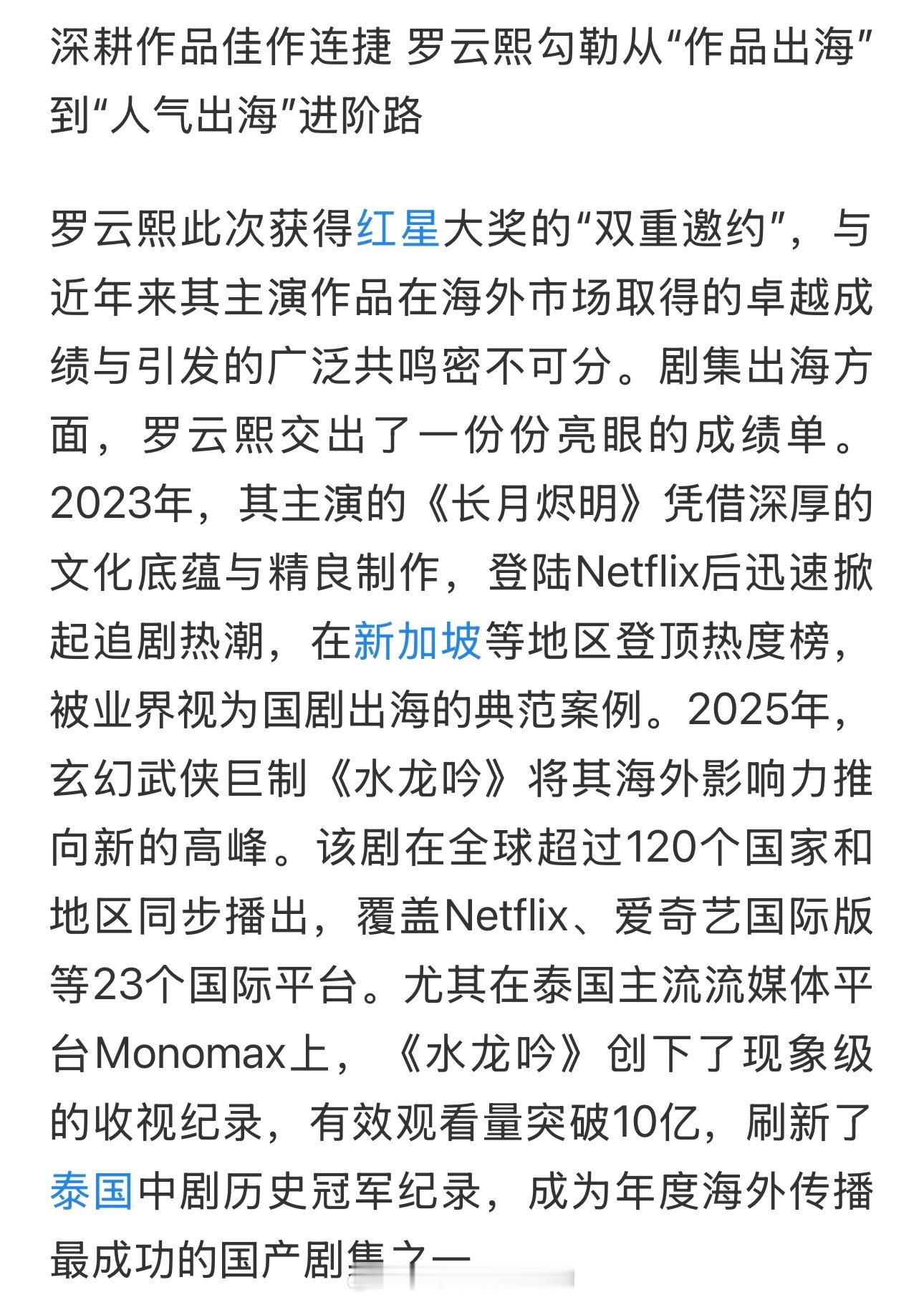 未来继续期待罗云熙其他的作品影响力,在国际舞台上书写中国文化出海的亮眼答卷罗云熙罗云熙