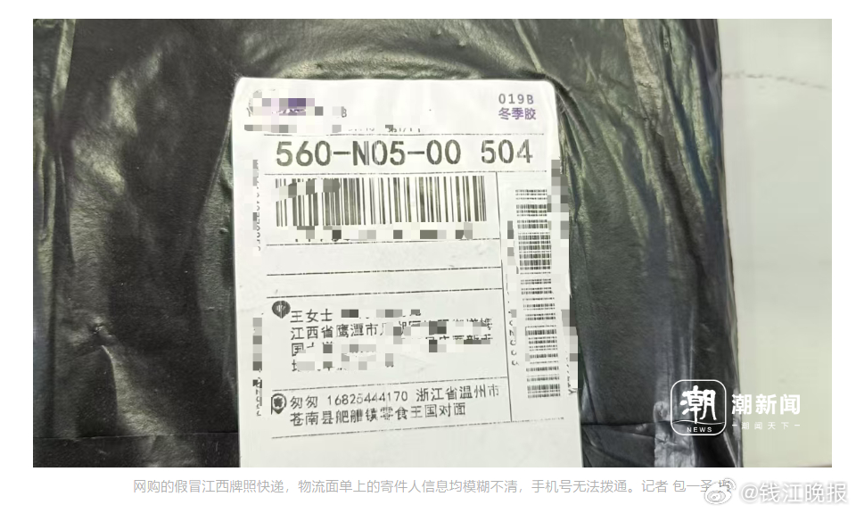 值得注意的是,记者收到的3个不同平台店铺发来的快递,物流面单上的寄件人信息均模糊不清,但通过物流信息查询发现,这3个快递均来自温州龙港市同一处快递站点。如“杭州牌照”快递仅标注“浙江省温州市苍南县宜山镇”,寄件人为李明,手机号无法拨通。记者就此致电该快递站点工作人员,工作人员表示,“杭州牌照”快递客户地址为苍南县金乡镇,“客户每天都会运一批货物过来寄送,我们只负责揽收。”