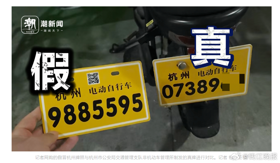 以记者收到的标注“杭州牌照”的快递为例,拆开后将其与正规电动自行车号牌对比发现,两者在颜色、字体、尺寸、二维码上几乎一致,扫描车牌上的二维码,显示结果也与真牌相同。记者将该假牌送至杭州市公安局交通管理支队非机动车管理所查验,工作人员通过网络系统查询车牌号码,显示该号码无任何绑定车辆信息。