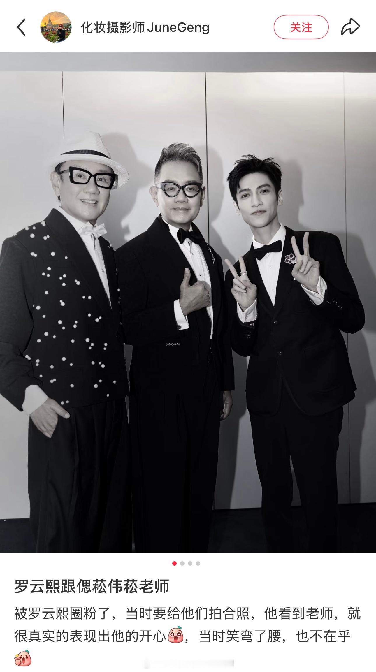 摄影师分享罗云熙跟李偲菘李伟菘老师合照还说被罗云熙圈粉了“他看到老师,就很真实的表现出他的开心,当时笑弯了腰,也不在乎”罗云熙罗云熙