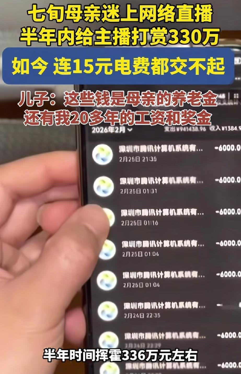 援边男子回家傻眼,七旬老母亲半年狂刷330万打赏男主播,连电费都掏不出