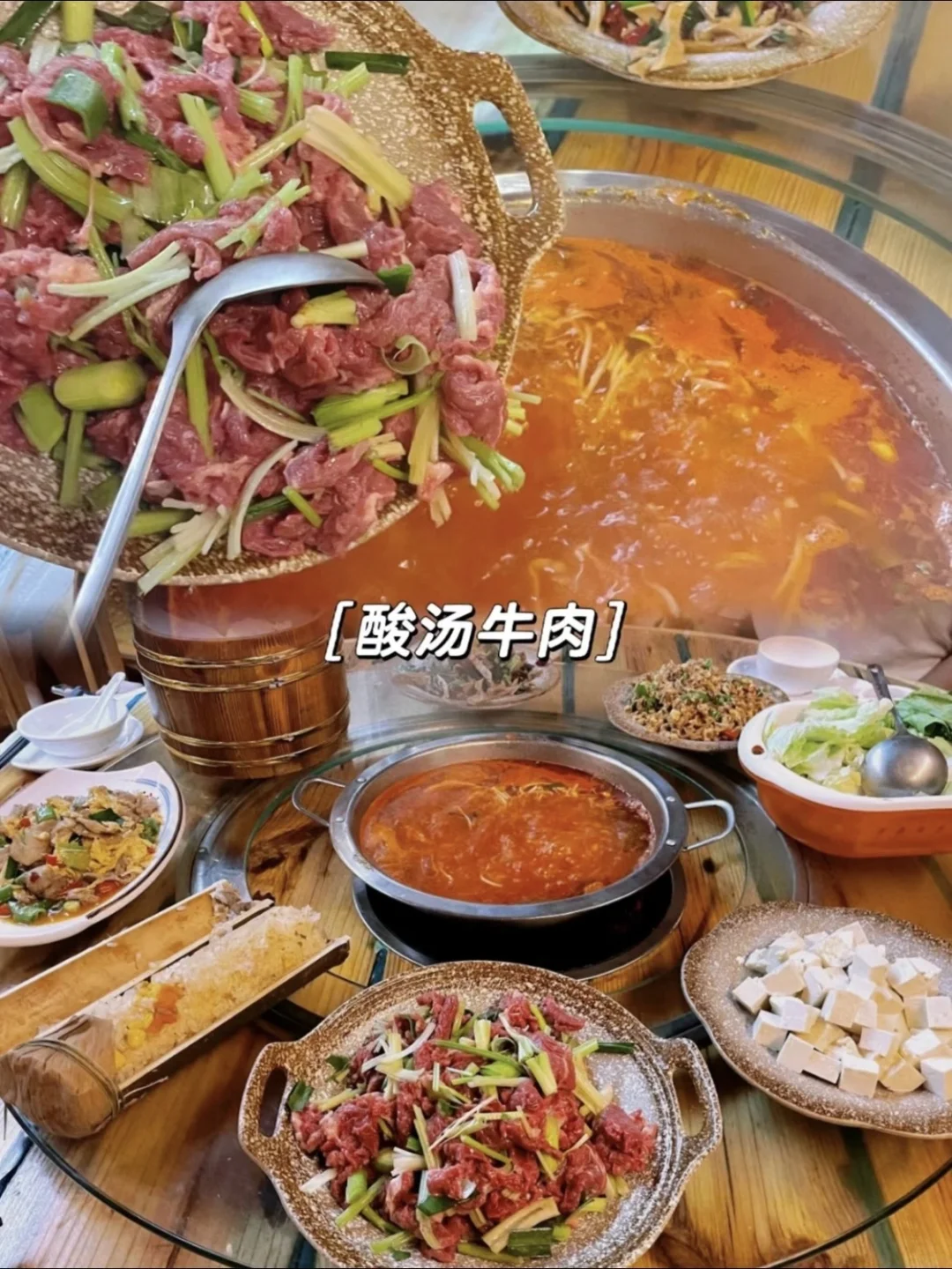 酸汤鱼、酸汤牛肉、牛瘪火锅、糯米包肉、脆皮香猪粉、野杨梅汁、烤五花肉、油茶……