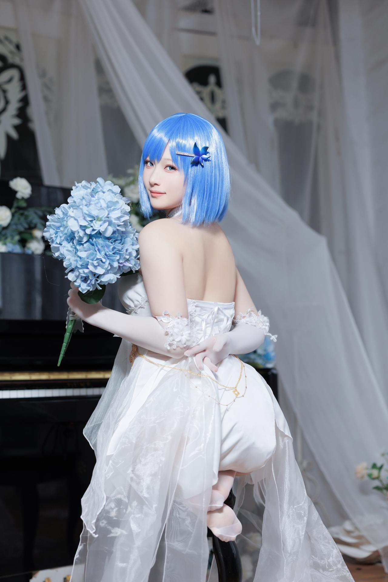 钢琴前的纯白新娘!蓝发少女的浪漫告白,这组写真美到窒息了