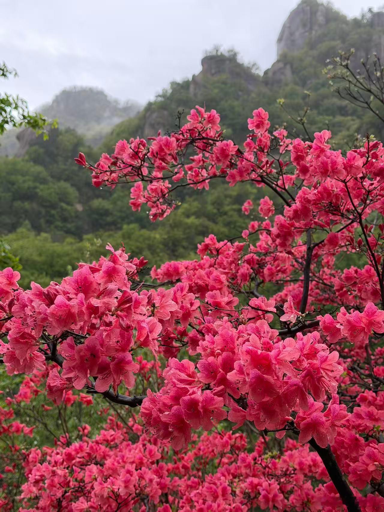 用杜鹃花打开河南的春天 河南的春天正被漫山遍野的野生杜鹃点燃,尤其西泰山的十万亩