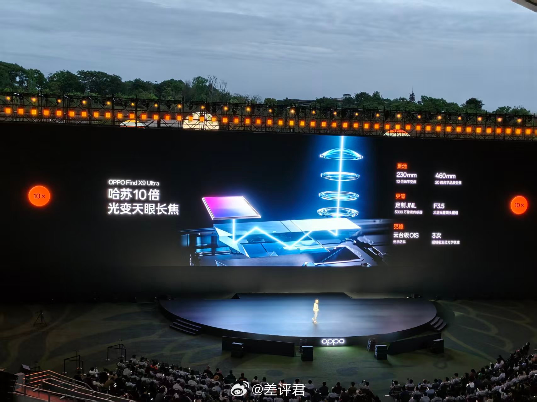 感觉 OPPO 这回的影像堆料策略太简单粗暴了,就是所有焦段全给你塞进去,没有凑数的,后置用了哈苏 2 亿主摄 + 哈苏 2 亿长焦 + 哈苏 10 倍超长焦 + 全新超广角。原生 10 倍光变又被 OPPO 带回了手机,挺惊喜的,能直出 5000 万像素照片,实用性很强,拍演唱会感觉不用增距镜也行了。