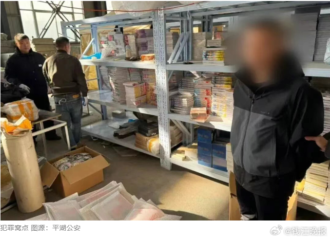 此次行动共捣毁犯罪窝点3个,扣押作案电脑2台、手机2部,涉案盗版书籍1万余册。经查,自2023年以来,黄某购进盗版书籍后,利用本人及近亲属的身份信息,在全国各地注册营业执照,打着“新华书店”的旗号开设网店100余家。随后,黄某以每套278元的低价,非法销售盗版书籍《如果历史是一群喵》共计30余万册,涉案图书标价总额高达1800余万元。目前,黄某因涉嫌销售侵权复制品罪,已被公安机关依法采取刑事强制措施,案件正在进一步侦办中。(潮新闻 记者 于瓅 平湖共享联盟记者 陈鑫誉)