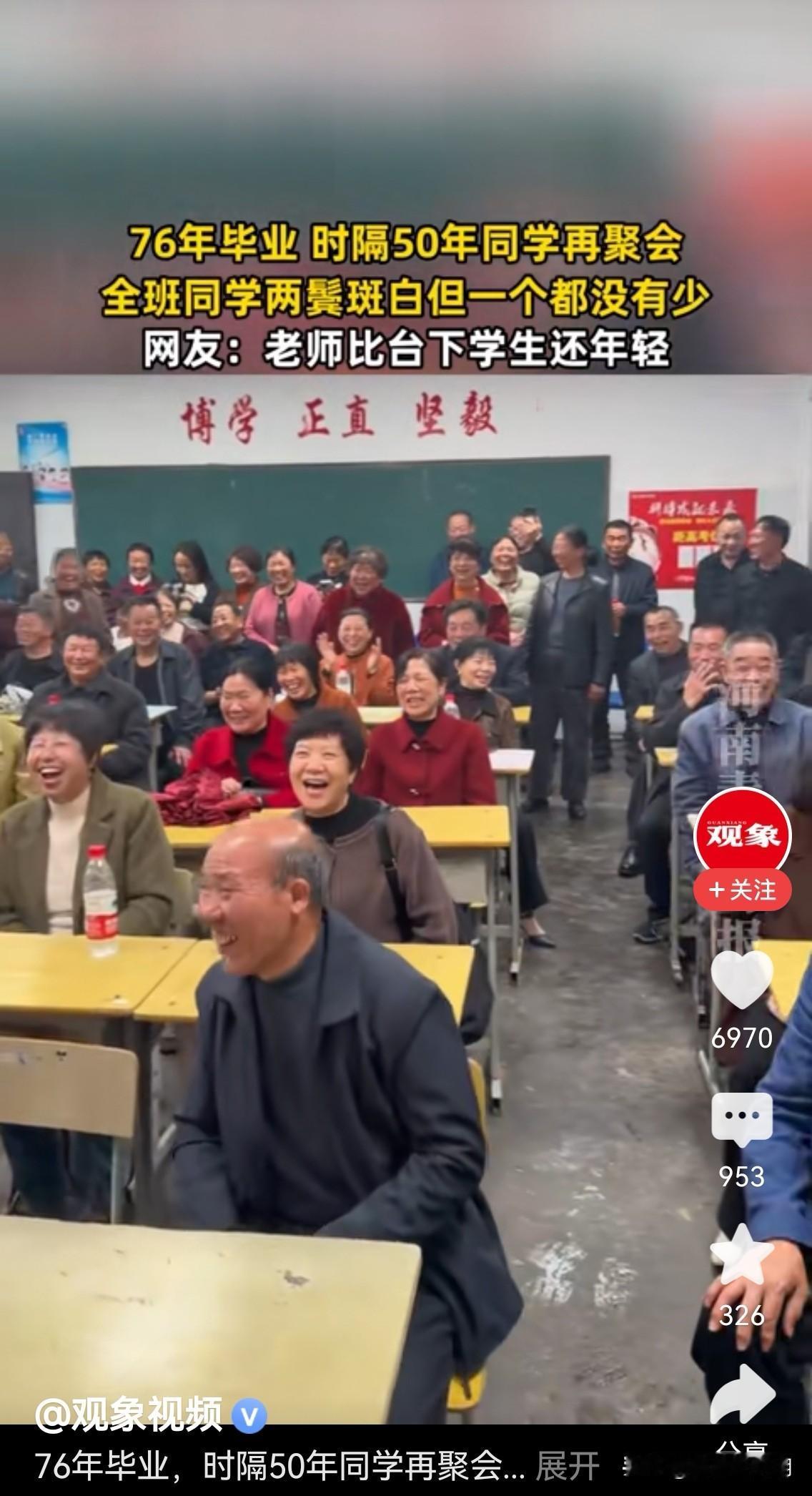 让全网都羡慕了: 1.全班同学都长寿,老师也健在,一个都没少; 2.同学各就各