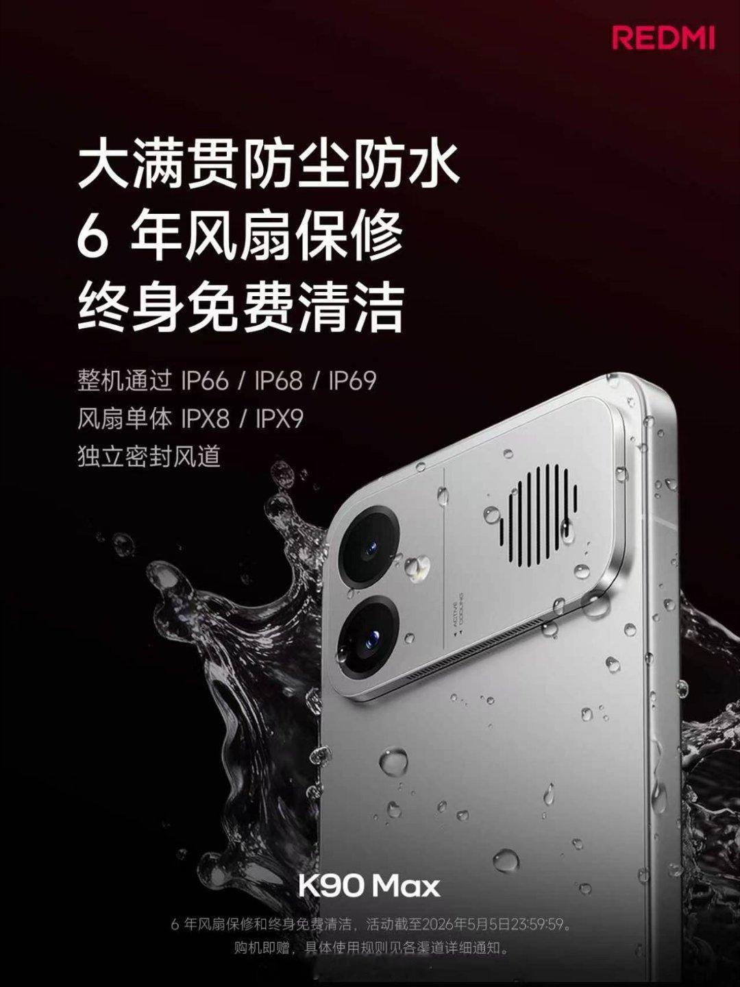 K90 Max 风冷主动散热,实测更强最高档位风速,100秒直降10°C知名 MOBA 游戏连玩 4 小时,不超 37 °C大型 3D 回合制游戏,高画质高帧率持续满帧高速强冷档,背部收音低至 32dB,更支持防尘防水5月5日前购机,送 6 年风扇保修 + 终身免费清洁养护