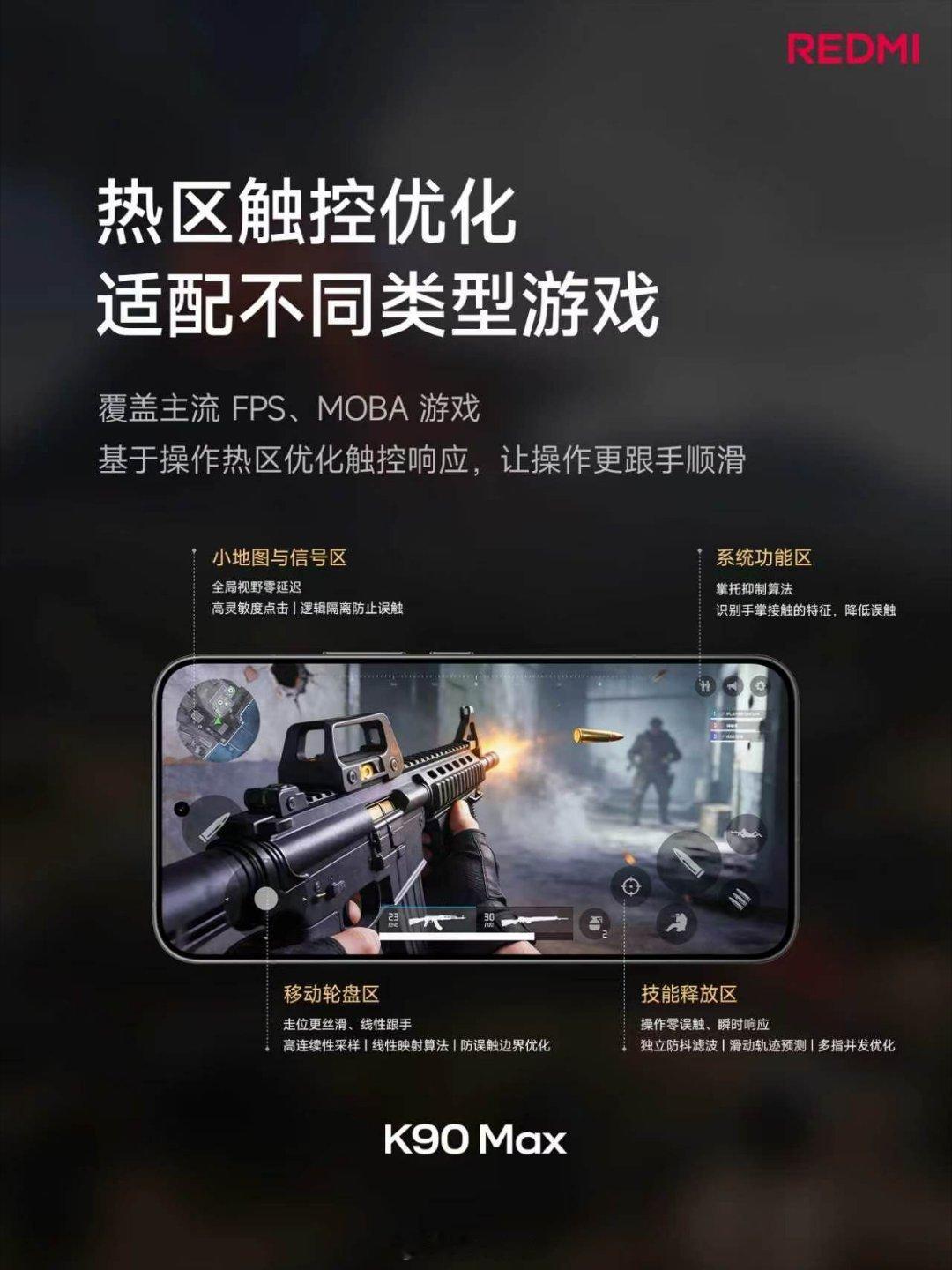 K90 Max 搭载 165Hz 高刷电竞屏165Hz 帧原生适配,超 40 款游戏搭配独显芯片,实现超百款主流游戏「超分 + 超帧」满血并发电竞分区触控,FPS、MOBA 操作精细调优小米青山护眼,新增游戏护眼模式一块好屏,让游戏体验全面进化!红米K90Max发布会