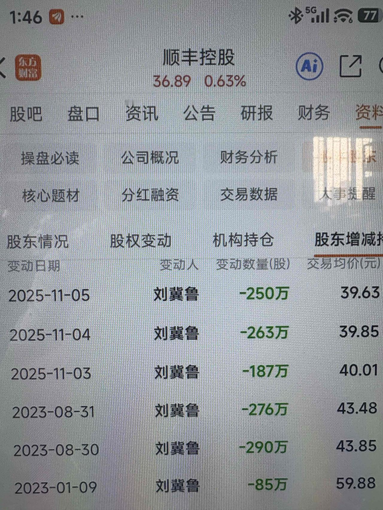 据公开资料顺丰控股002352的高管刘冀鲁至2016年以来已经持了32个亿,目前他还持股2 8 70万股,而他这辈子最幸运的是就被顺丰借壳上市。他是马鞍山鼎泰金属制品厂的总经理改制成立了鼎泰科技2010年上市。通过顺丰的借口,他最少赚了60个亿绝对的实现了财务自由。作为一个小股民我们如何才能从这只股票上赚钱?大部分买这只股票的股民都是亏的一塌糊涂,从最高峰的114元跌到现在的37元…..