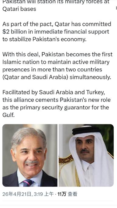 协议里写着,巴基斯坦将直接向卡塔尔本土军事基地,部署成建制的现役作战部队,合作直接捅到了防务安全的最核心。
