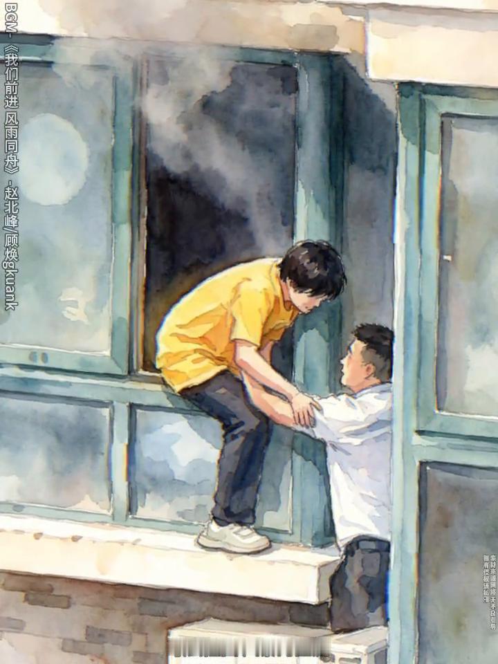 为什么浓烟呛坏了咽喉?为什么泥浆淹没了双手?将女孩抱出房间,一直在安慰女孩。为什么单薄的肩头,敢去阻挡风暴的狂流?为什么打压成了推手?两个人躲在平台上,大哥一边安抚一边保护女孩。为什么归来日夜坚守,终于等到了救援两个人平安。