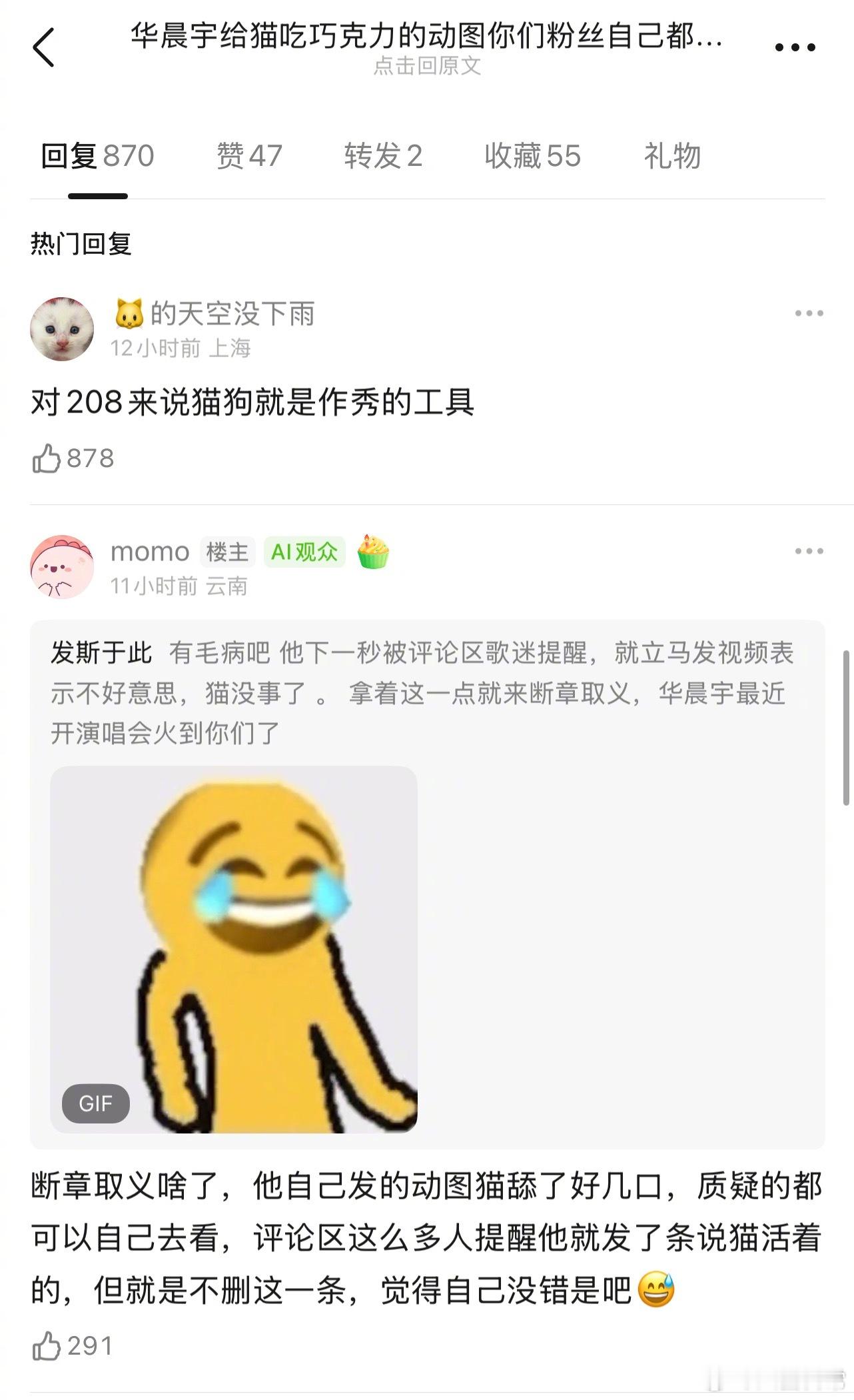 华晨宇喂猫吃巧克力蛋糕引发热议