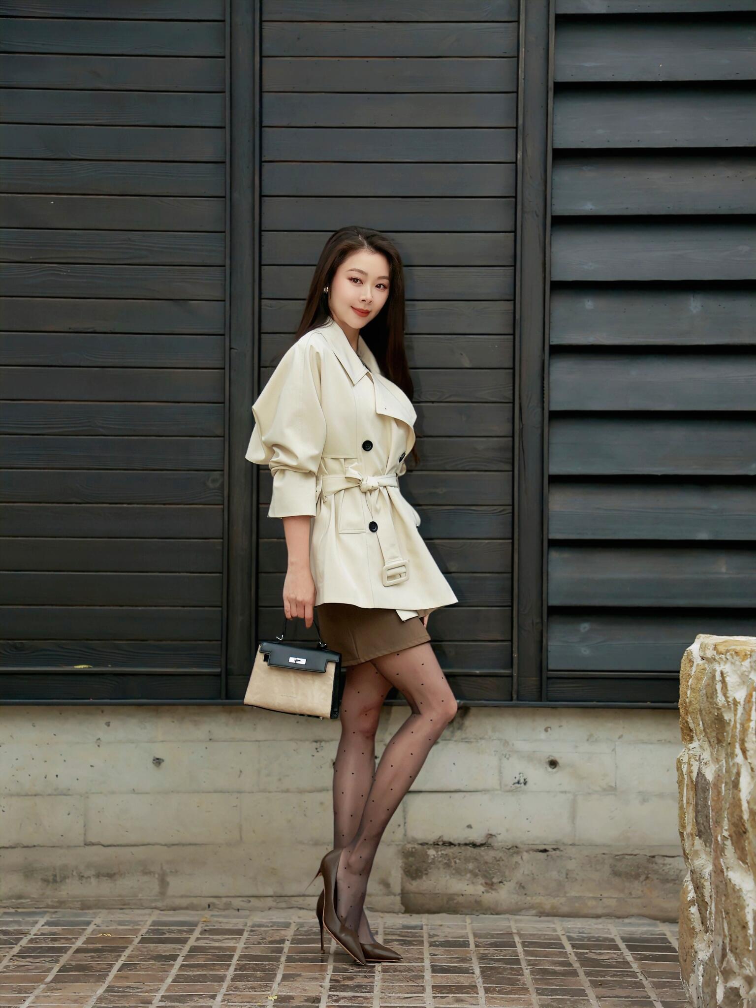 风衣与丝袜的极致拉扯