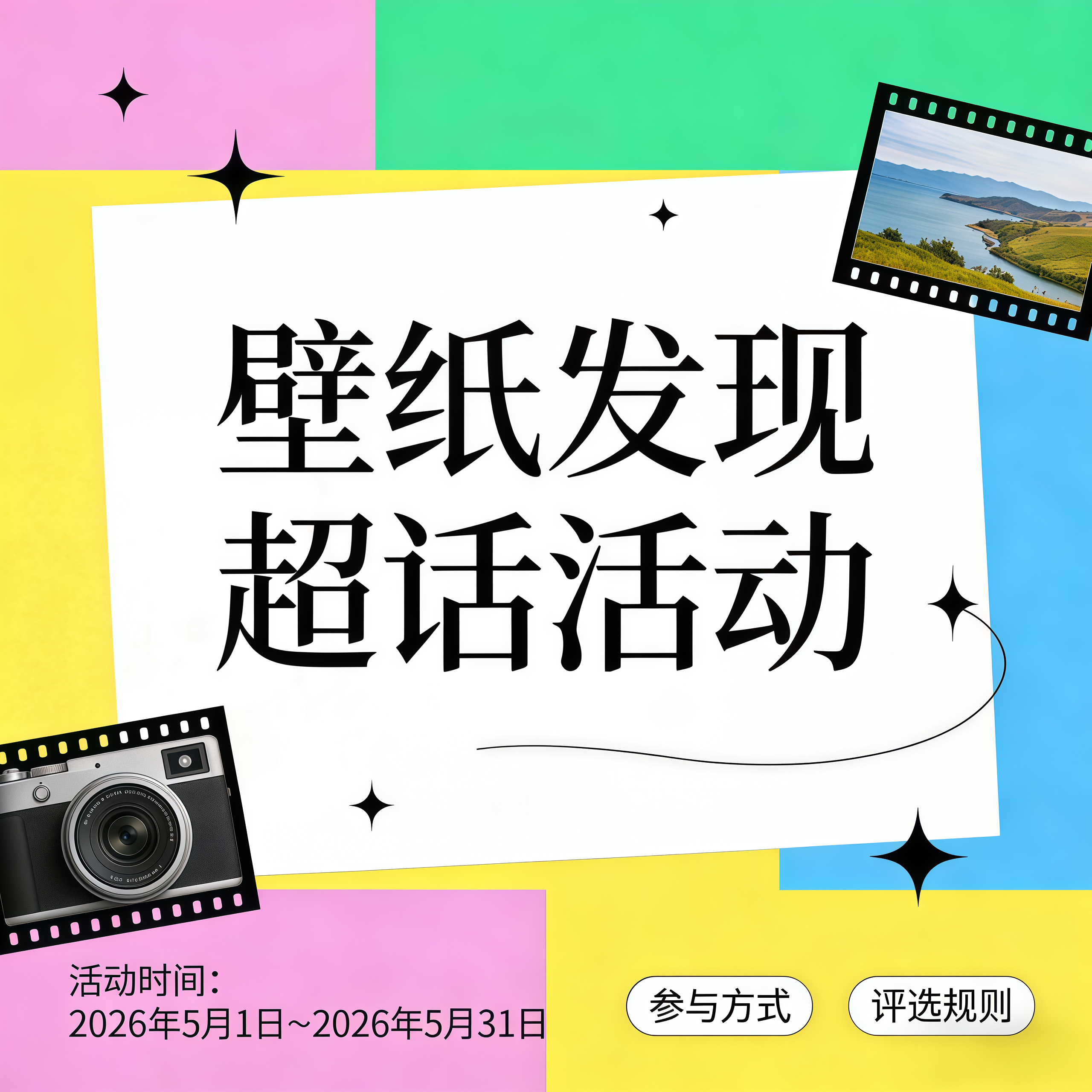 2. 2026年5月1日~2026年5月31日,拍摄身边原创美景照片(自然风光、城市街景、晚霞落日、花草绿植等,能当壁纸的画面都可);