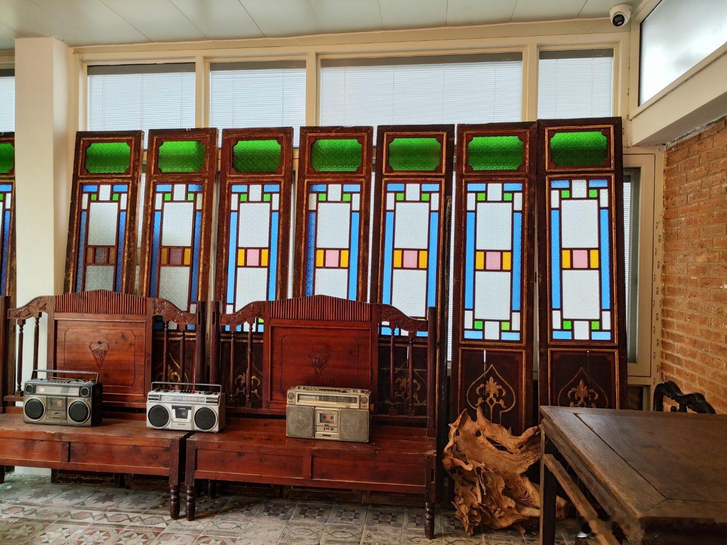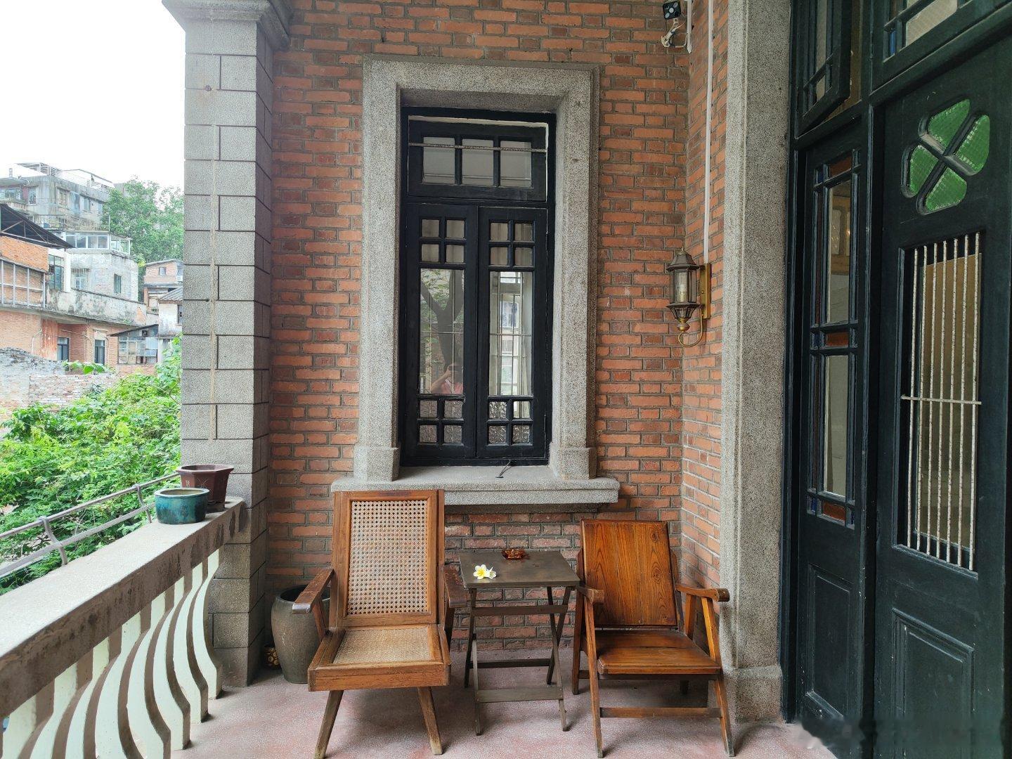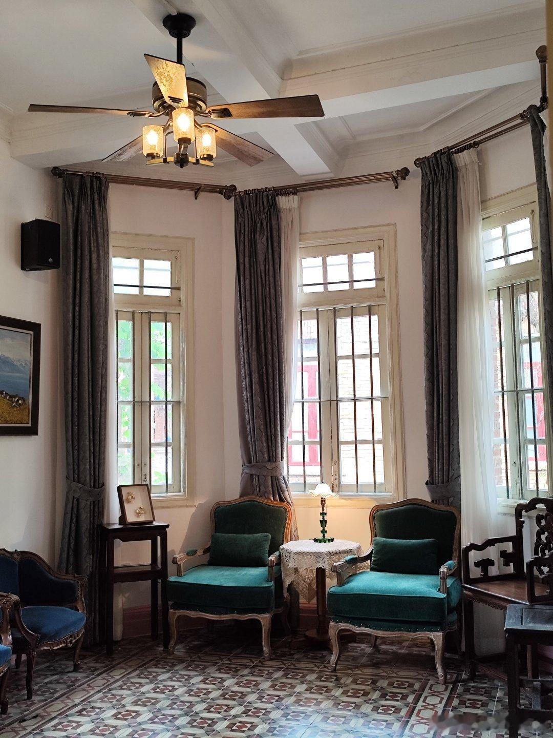 【萄园艺术馆】松岗东片区一间活化的小洋楼,处处展现民国建筑风格,多个款式的花阶砖,彩色玻璃窗和屏风,天台绿瓦小亭子,衬着绿树成荫,开开会,聊聊天~