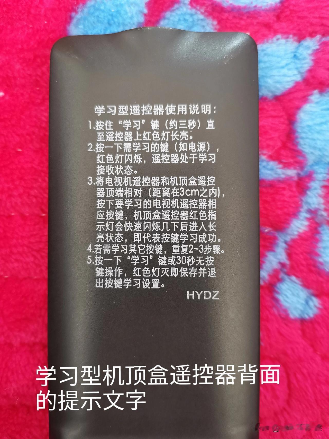 “学习型遥控器使用说明”,按照操作方法试了一下,居然成功了,机顶盒遥控器也可以打开电视机。