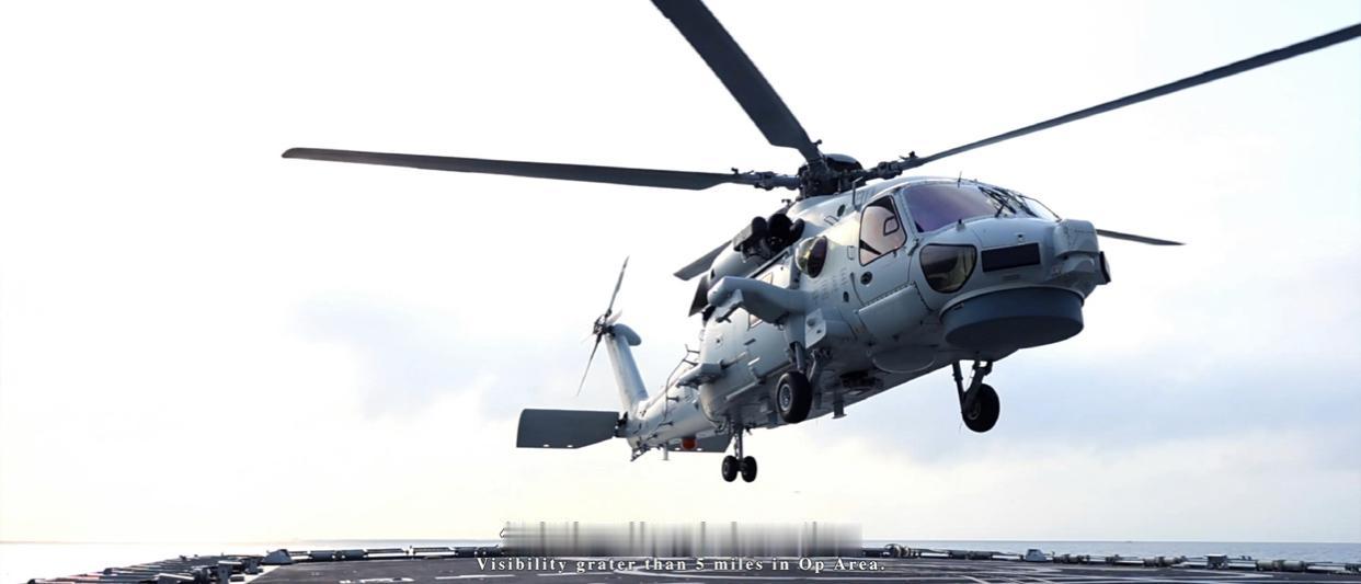 舰载直-20F直升机在舰上起飞